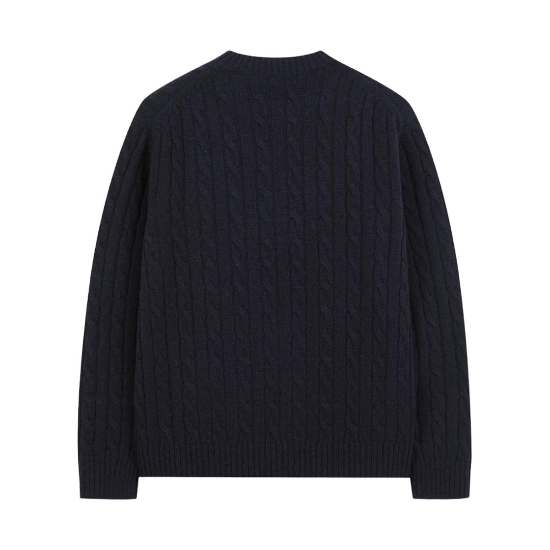 Brooks Brothers Shetland Cable Logo Sweater Navy