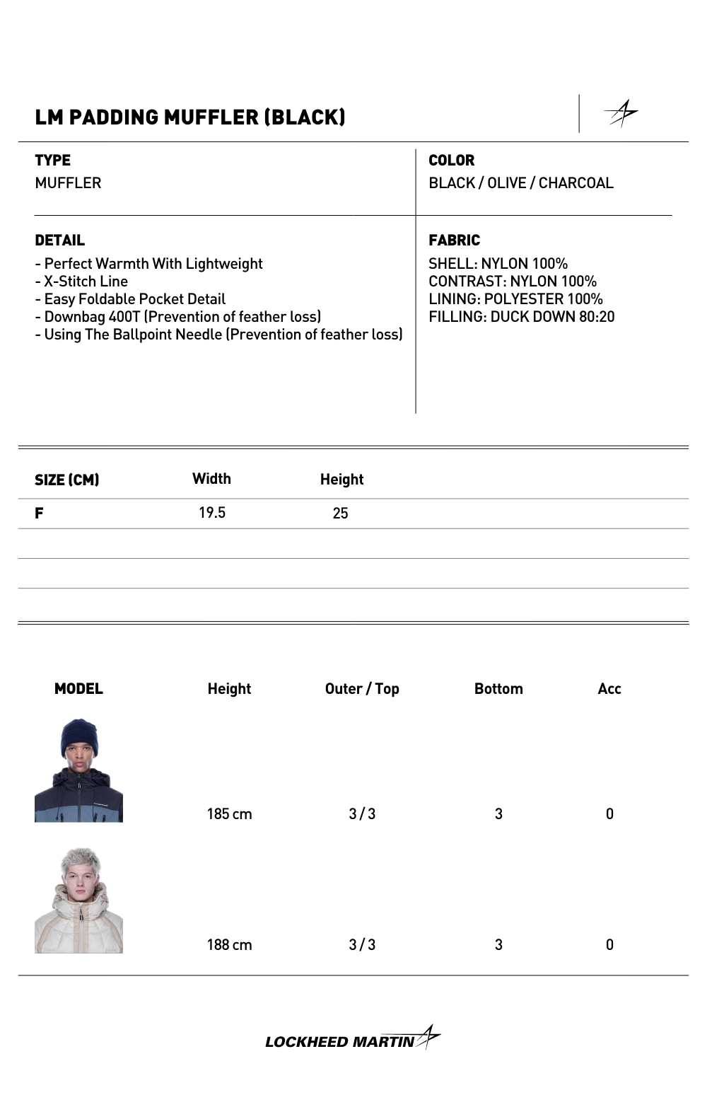 록히드마틴 LM 패딩 머플러 블랙