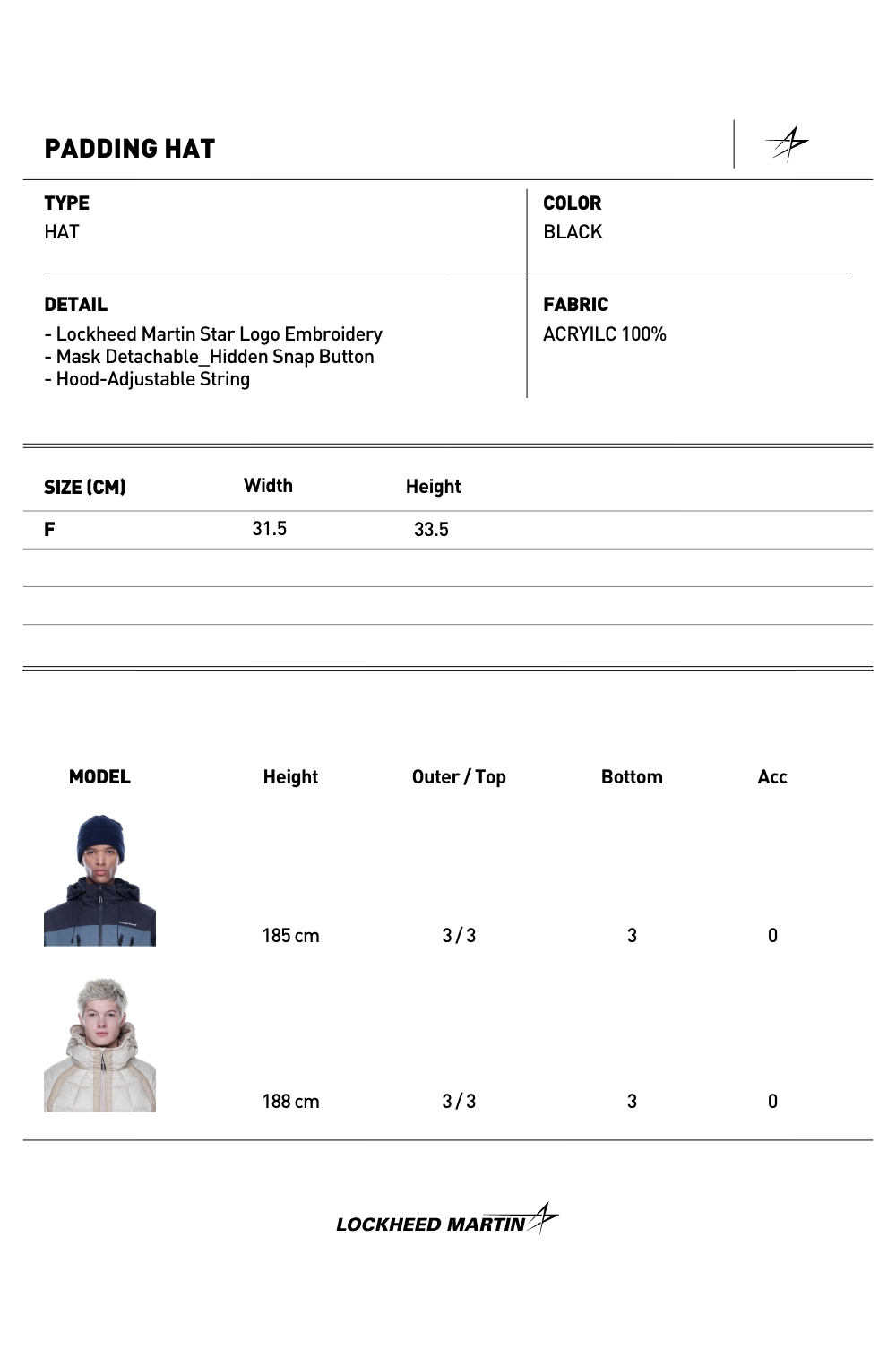 록히드마틴 패딩 햇 블랙