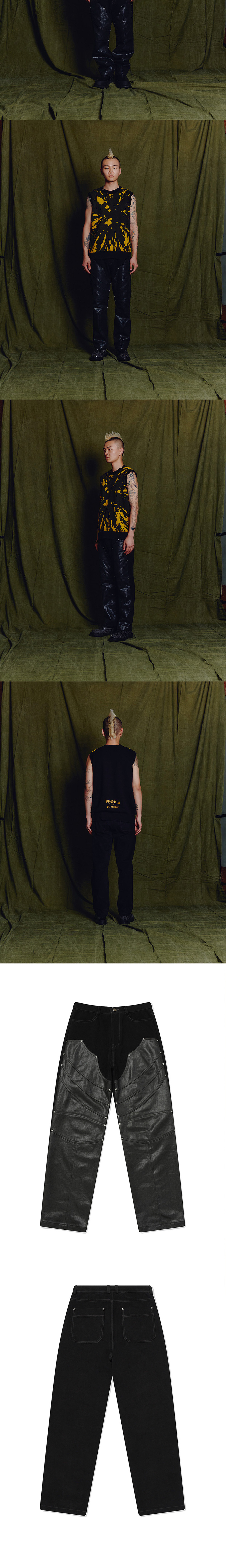 미드라이즈, 세미 테이퍼드 핏 앞면 포켓과 뒷면 아웃포켓 배색으로 앞면 스타일 라인 디테일 리벳 하드웨어 디테일 7수 카치온과 바이오 워싱 가공을 통한 탄탄하고 부드러운 터치감 7수 코팅 가공한 면 트윌 소재 배색 톤온톤 배색 디테일과 은은한 광택감