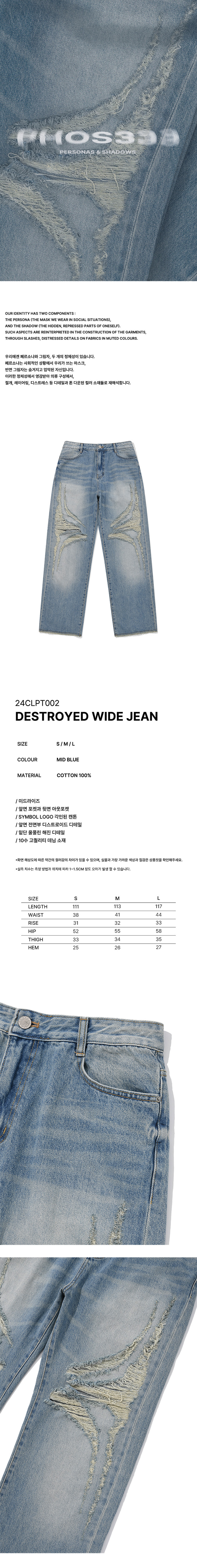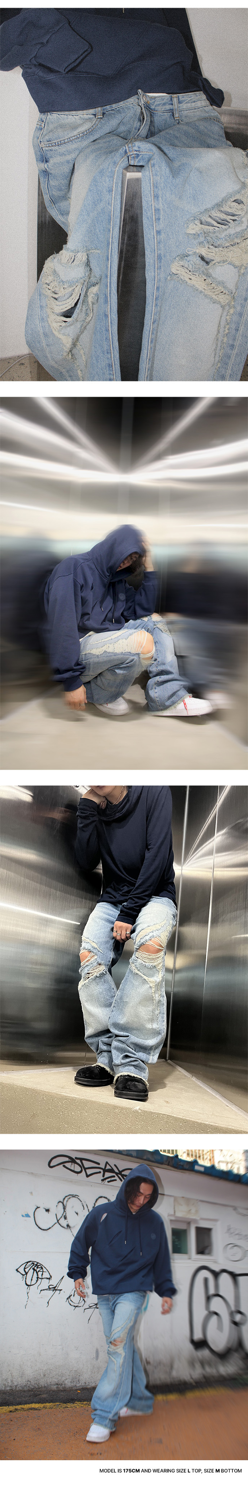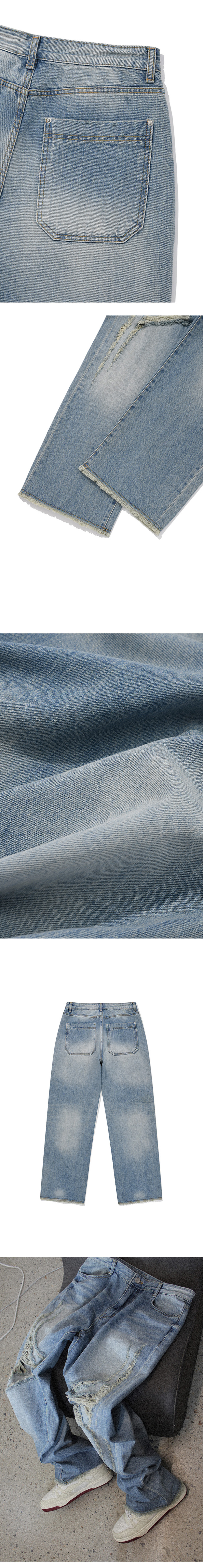 미드라이즈 앞면 포켓과 뒷면 아웃포켓 333 Circle Logo 각인된 캔톤 앞면 전면부 디스트로이드 디테일 밑단 울 풀린 해진 디테일 10수 고퀄리티 데님 소재