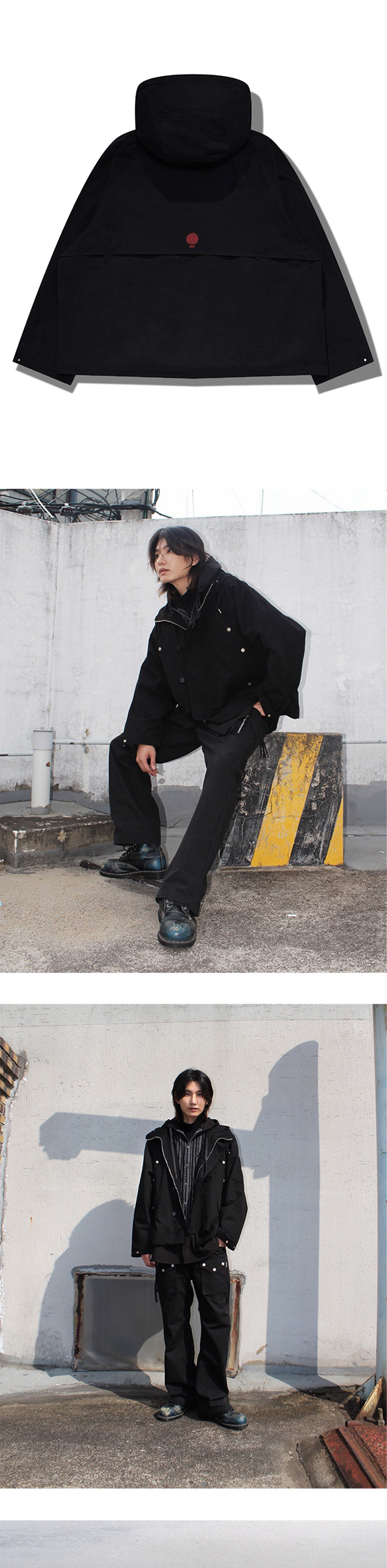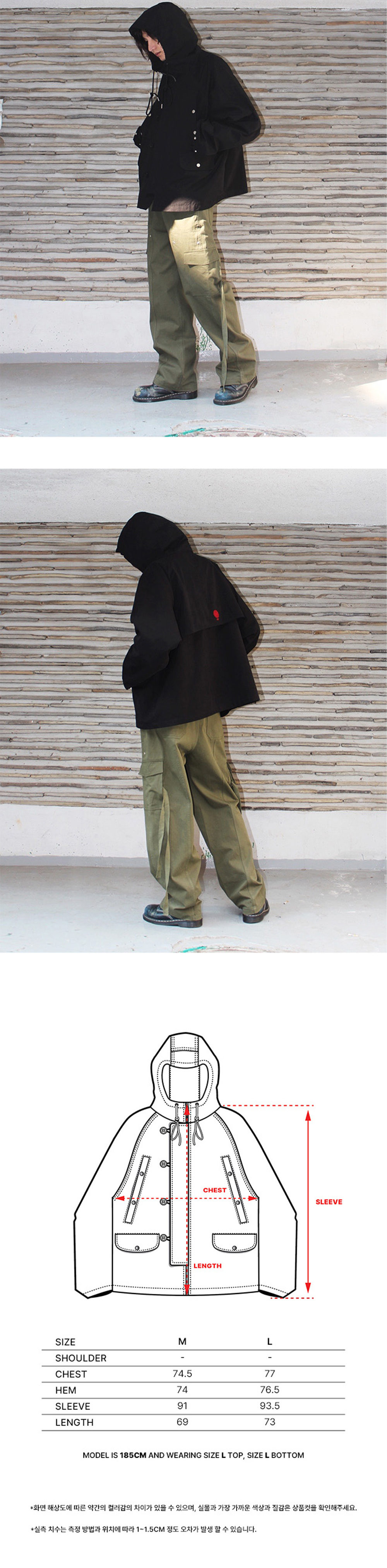 세미 오버사이즈 핏 기능성 원단(방수 처리) N3B 디테일 재해석 뒤판 백플랩 디테일 앞면 다양한 수납 가능한 4포켓 / 메탈 스냅 사용 앞 플라켓은 방풍 기능이 탁월하게 넓게 디자인 단추 뒷면에 와샤 작업으로 뜯김에 견고 양쪽으로 열리는 YKK 투웨이 지퍼 / 슬라이더 코딩 가공 소매부분의 스냅 고정이 견고한 특수스냅 사용