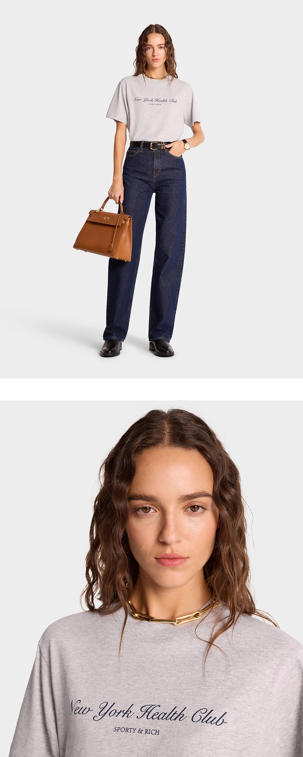 스포티 앤 리치 NY 헬스 클럽 티셔츠 헤더 그레이 - 24FW