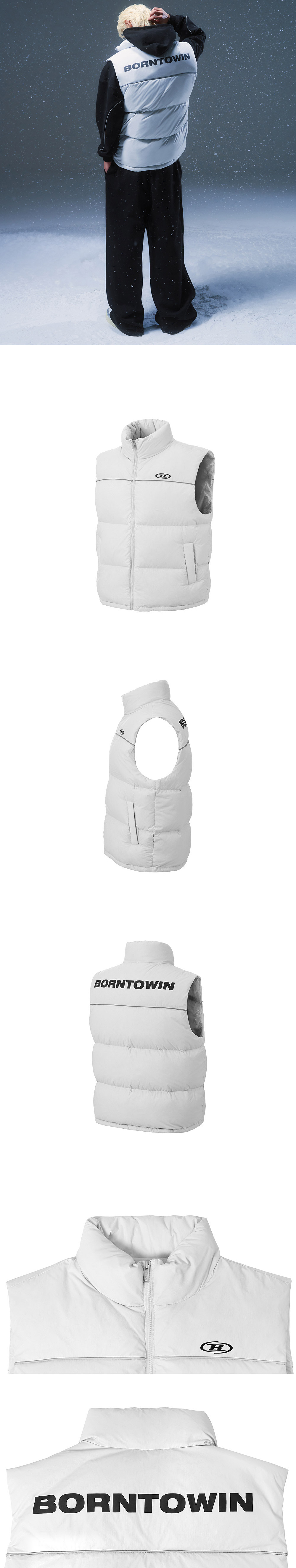 본투윈 심볼 B 푸퍼 다운 베스트 그레이