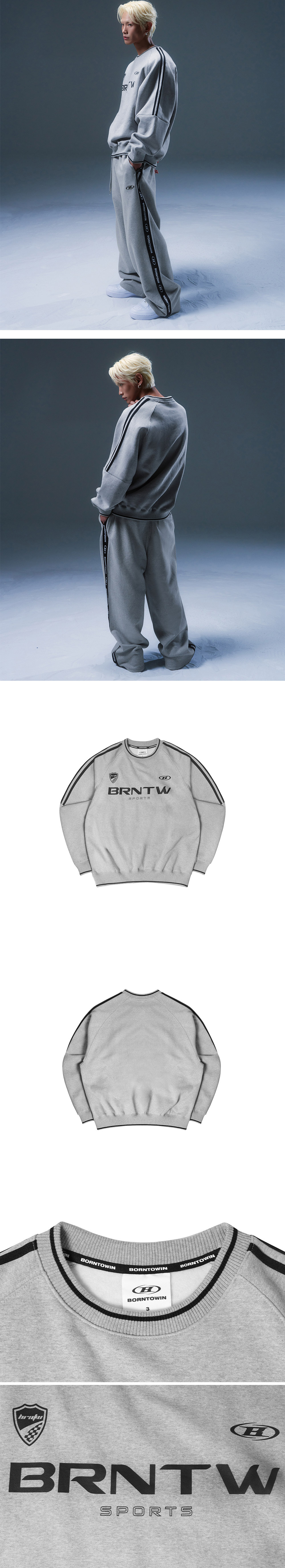 본투윈 플리스 BRNTW 트랙 라인 스웻셔츠 멜란지 그레이