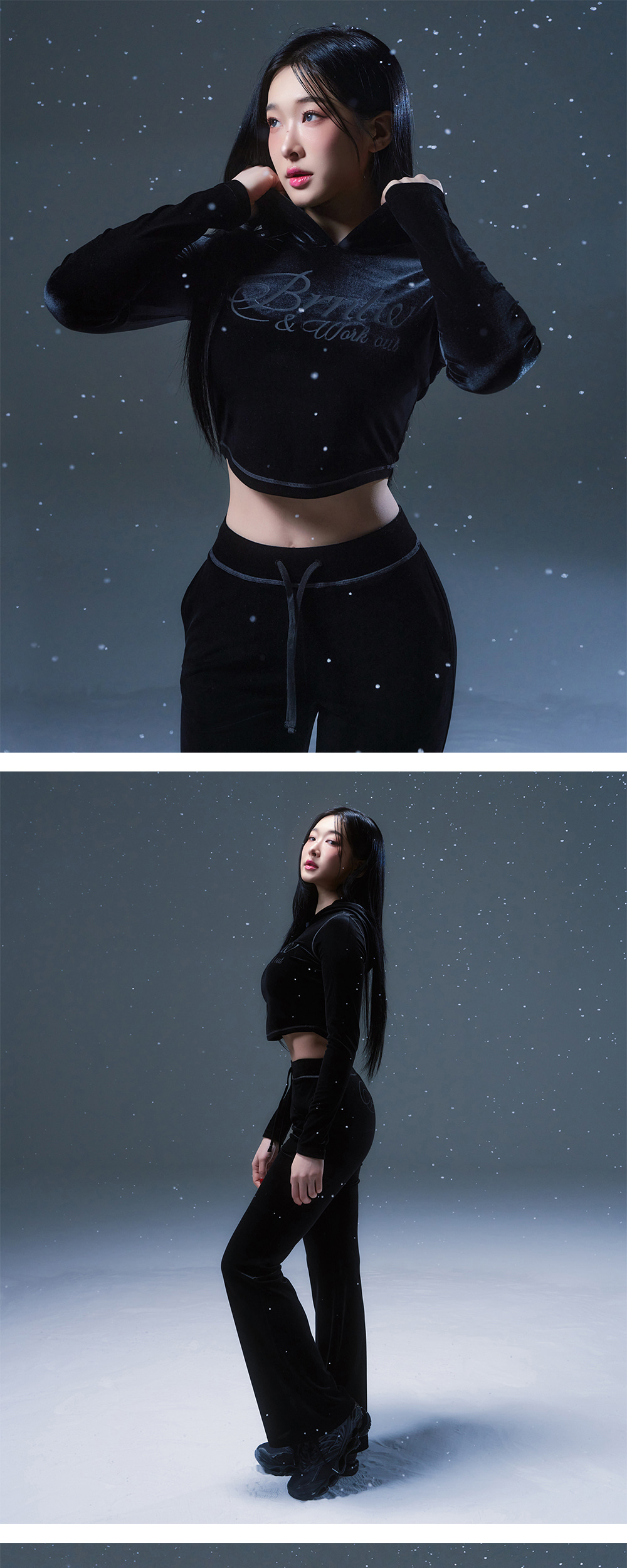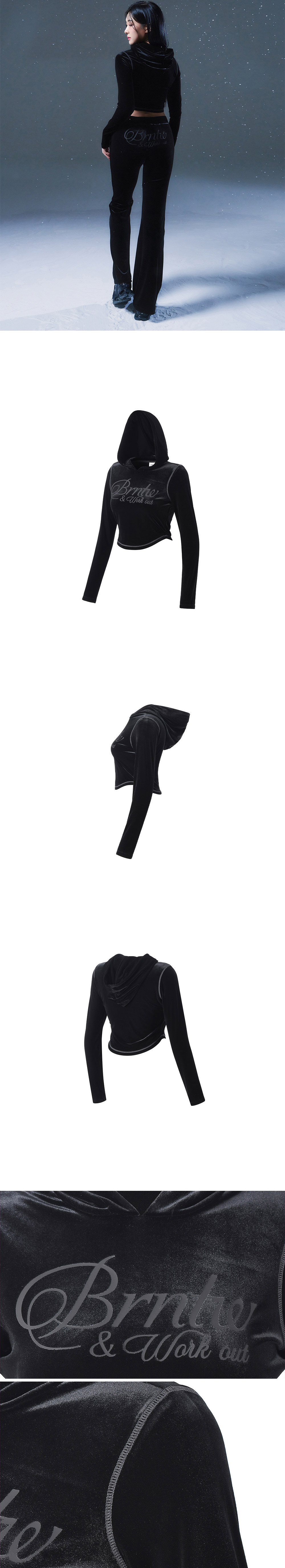 [DETAILS] * 벨루어 슬림핏 후디 - 소프트 벨벳 스판 원단 - Flocking 기법 레터링 로고 - 배색 스티치 포인트 - 슬림핏 Material : POLYESTER 90%, POLYURETHANE 10% Fitting : DB 1 Size, 171cm, 57kg