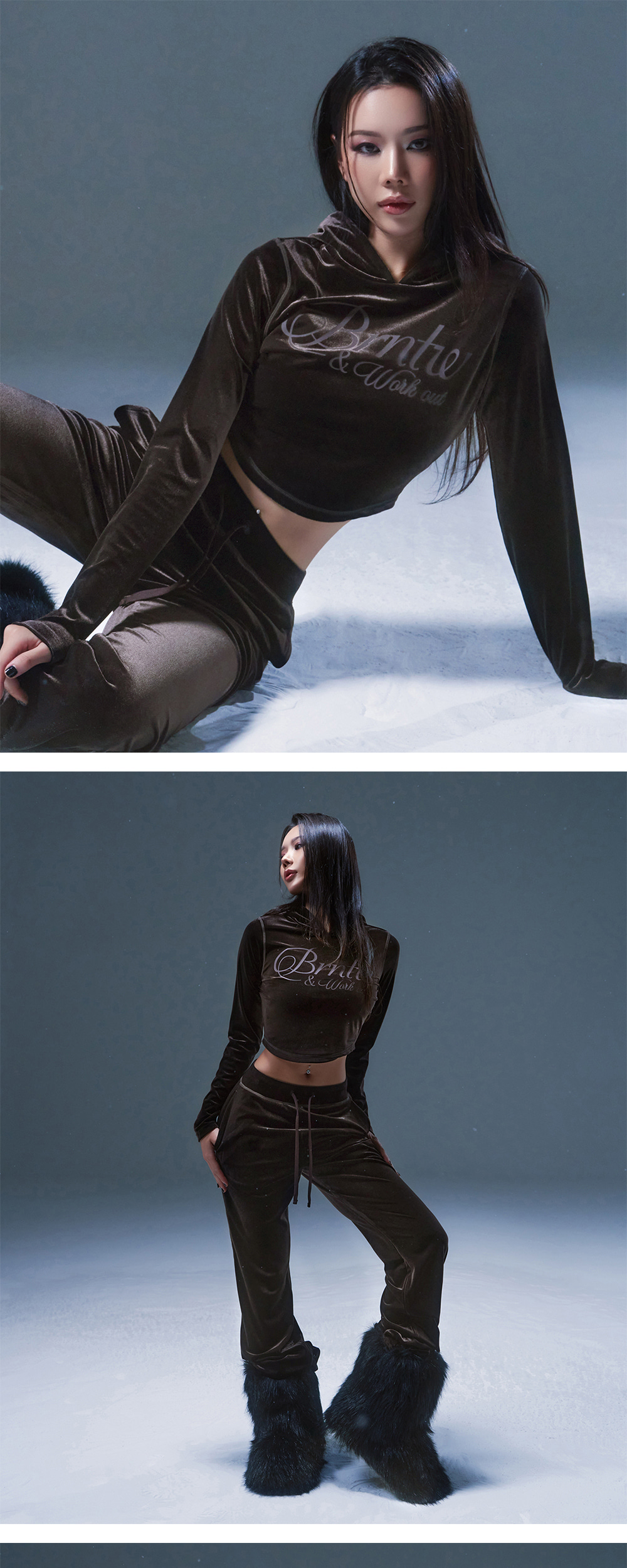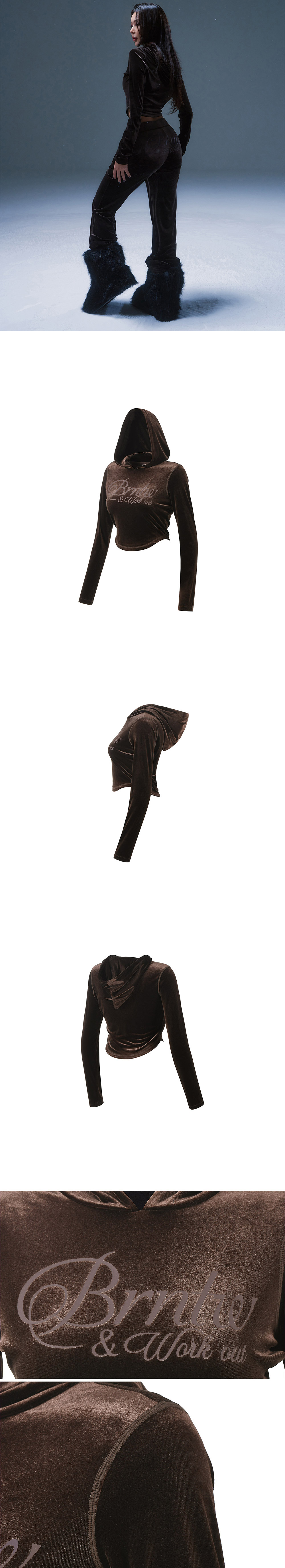 [DETAILS] * 벨루어 슬림핏 후디 - 소프트 벨벳 스판 원단 - Flocking 기법 레터링 로고 - 배색 스티치 포인트 - 슬림핏 Material : POLYESTER 90%, POLYURETHANE 10% Fitting : NH 1 Size, 162cm, 46kg