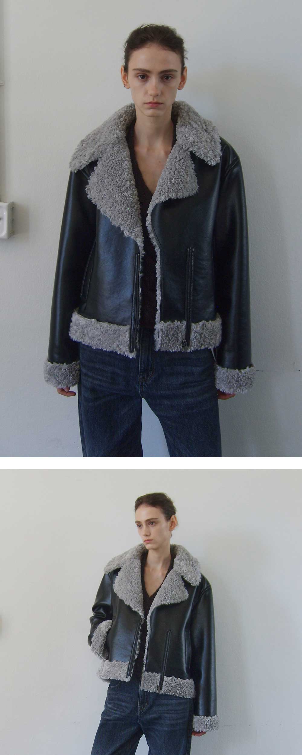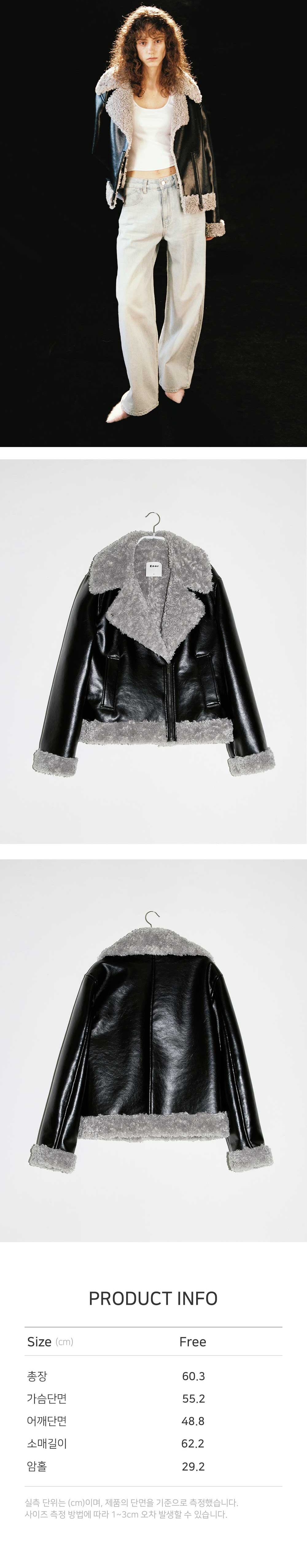 - 고급스러운 은은한 광택감이 돋보이는 에코 레더 무스탕입니다. - 에코퍼의 긴 헤어감으로 높은 보온성을 자랑하며 이면의 퍼 안감과 포켓에 기모 안감을 더해 겨울철 더욱 포근한 착용감을 선사합니다. - 워싱 처리가 된 원단으로 부드럽고 자연스러운 크랙감이 특징입니다. - 카라에 리벳 여밈 구성으로 싱글 카라로 연출이 가능하며 6MM의 숄더 패드로 깔끔하고 탄탄한 실루엣을 선사합니다. - 엔오르의 자체 염색 과정을 통해 엔오르에서만 볼 수 있는 컬러감입니다.
