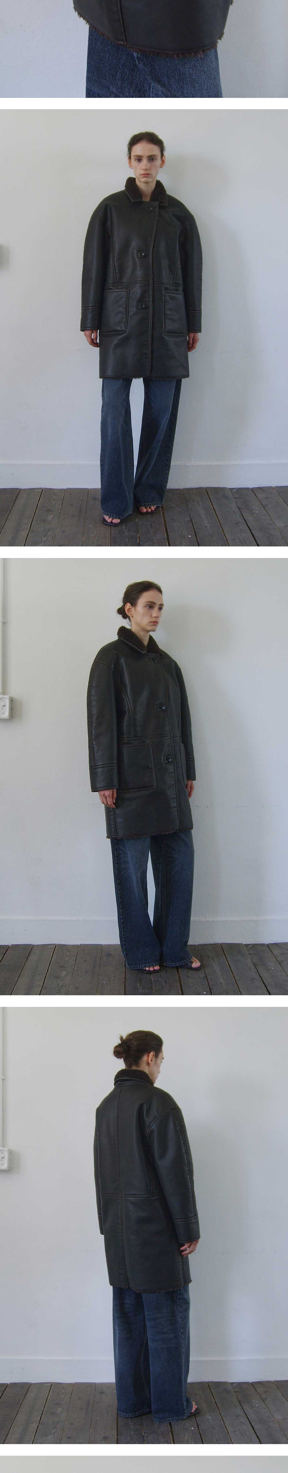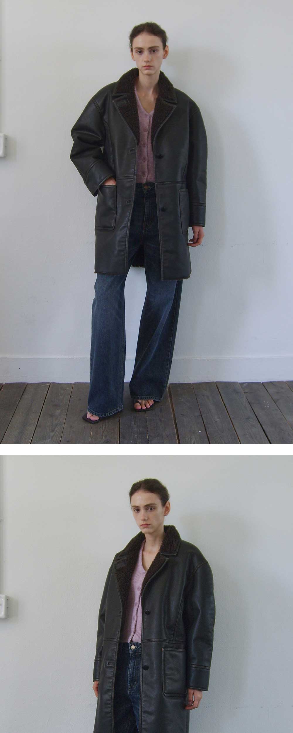 - 은은한 광택감과 빈티지한 텍스처가 매력적인 시어링 코트입니다. - 부드럽고 가벼운 착용감을 선사하며 적당한 미디 길이의 기장감으로 활동성을 높였습니다. - 워싱 후가공으로 더욱 부드럽고 자연스러운 크랙과 빈티지한 다잉 컬러로 캐주얼한 감성을 더해줍니다. - 소뿔 단추 여밈 구성으로 고급스러움을 더했으며 싱글 카라로 연출이 가능합니다. - 양 사이드의 아웃 포켓으로 실용성과 뒷 트임으로 편안한 착용감을 고려했습니다.