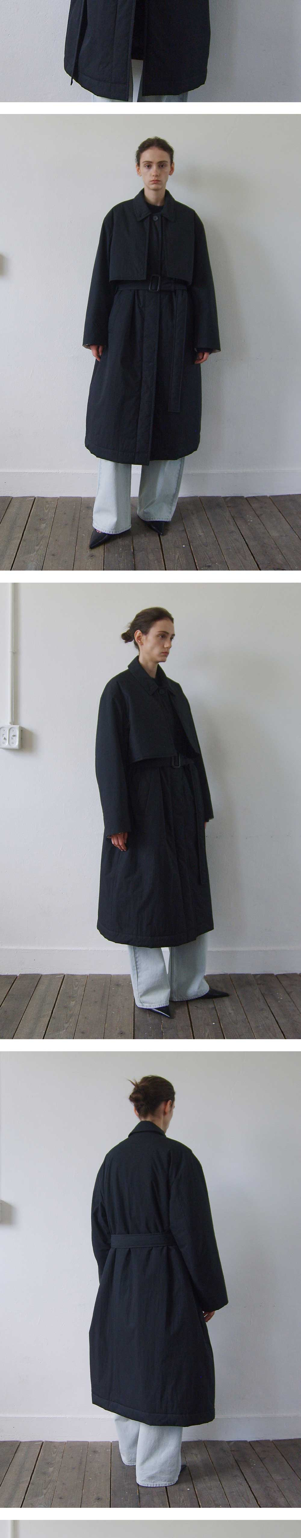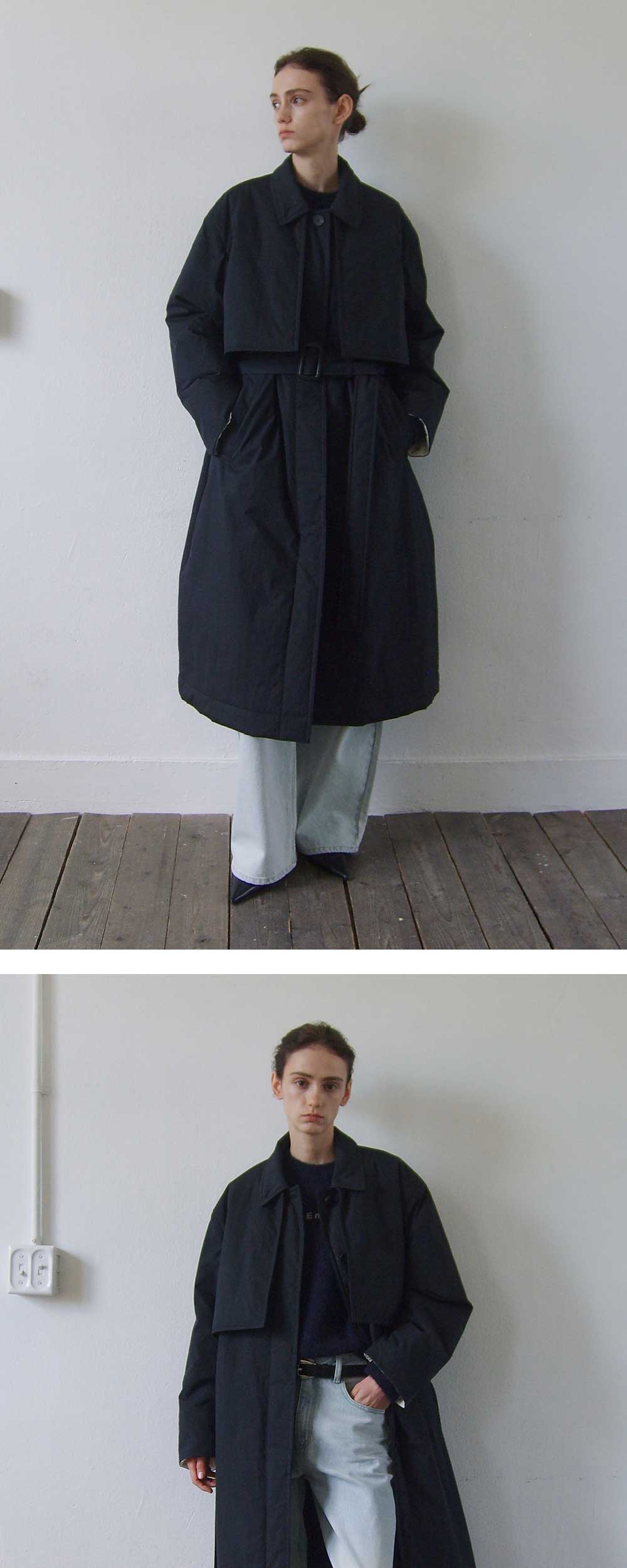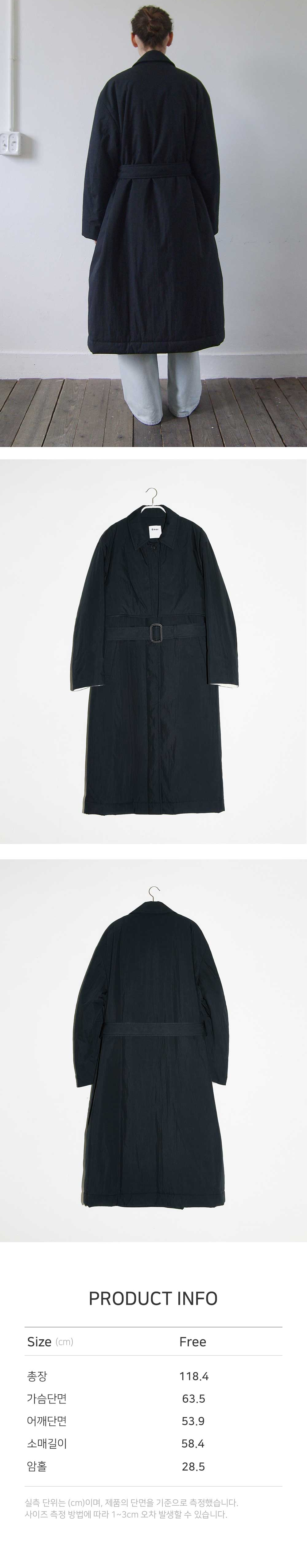 3M THINSULATE 신슐레이트 는 미국 3M 브랜드가 개발한 보온용 단열 소재로 부피를 줄여 얇으면서 보온성을 유지해주어 천연소재를 제외한 어떤 합성소재보다 두께 및 무게 대비 보온력이 뛰어납니다. - 트렌치 형태의 디자인 가벼운 패딩 코트입니다. - 겉감의 코튼 소재로 가을 트렌치와 같은 무드를 연출했습니다. - 긴 기장감과 미세한 볼륨 소매 디테일의 여유로운 실루엣으로 다양한 이너와 함께 스타일링이 가능합니다. - 소매 안쪽의 배색 디테일로 롤업 연출시 배색으로 포인트 연출이 가능합니다. - 넥 부분의 단추를 이용하여 하이넥으로 연출하여 겨울철 따뜻하게 체온을 유지 할 수 있습니다. - 히든 단추와 별도 벨트가 있어 이중 여밈이 가능하며 전체 안감처리로 제품의 완성도를 높였습니다.