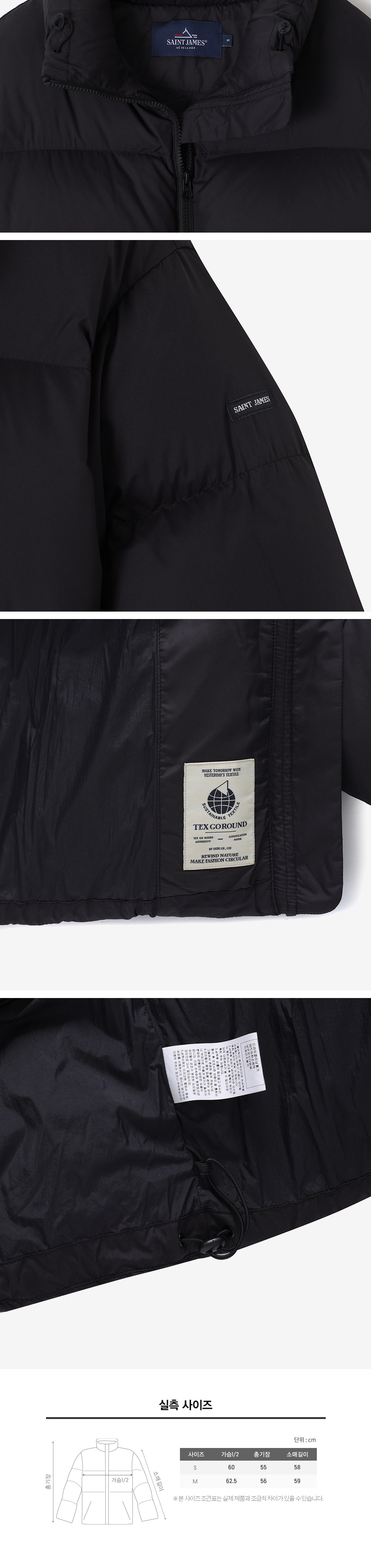 한국에서 진행한 Saint James 라이센스 스타일. 텍스고라운드사의 서트테이너블 원단을 사용한 다운 자켓. 고밀도 나일론 원단과 덕다운 내장재를 사용하여 가볍고 착용감이 좋다. 하이넥 디자인에 내부 스트링+스토퍼 디테일로 보온성을 높이고 다양한 실루엣 연출이 가능하다.