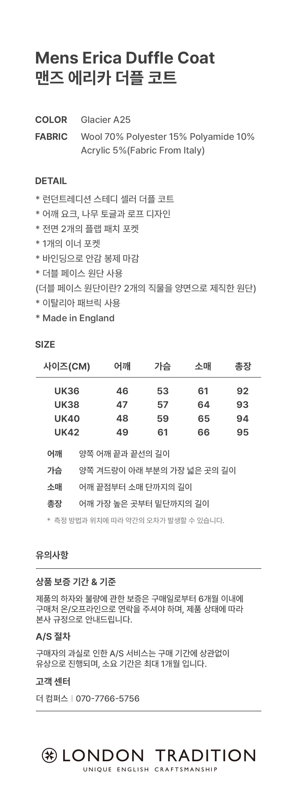 런던 트레디션 맨즈 에리카 더플 코트 글레이셔 A25