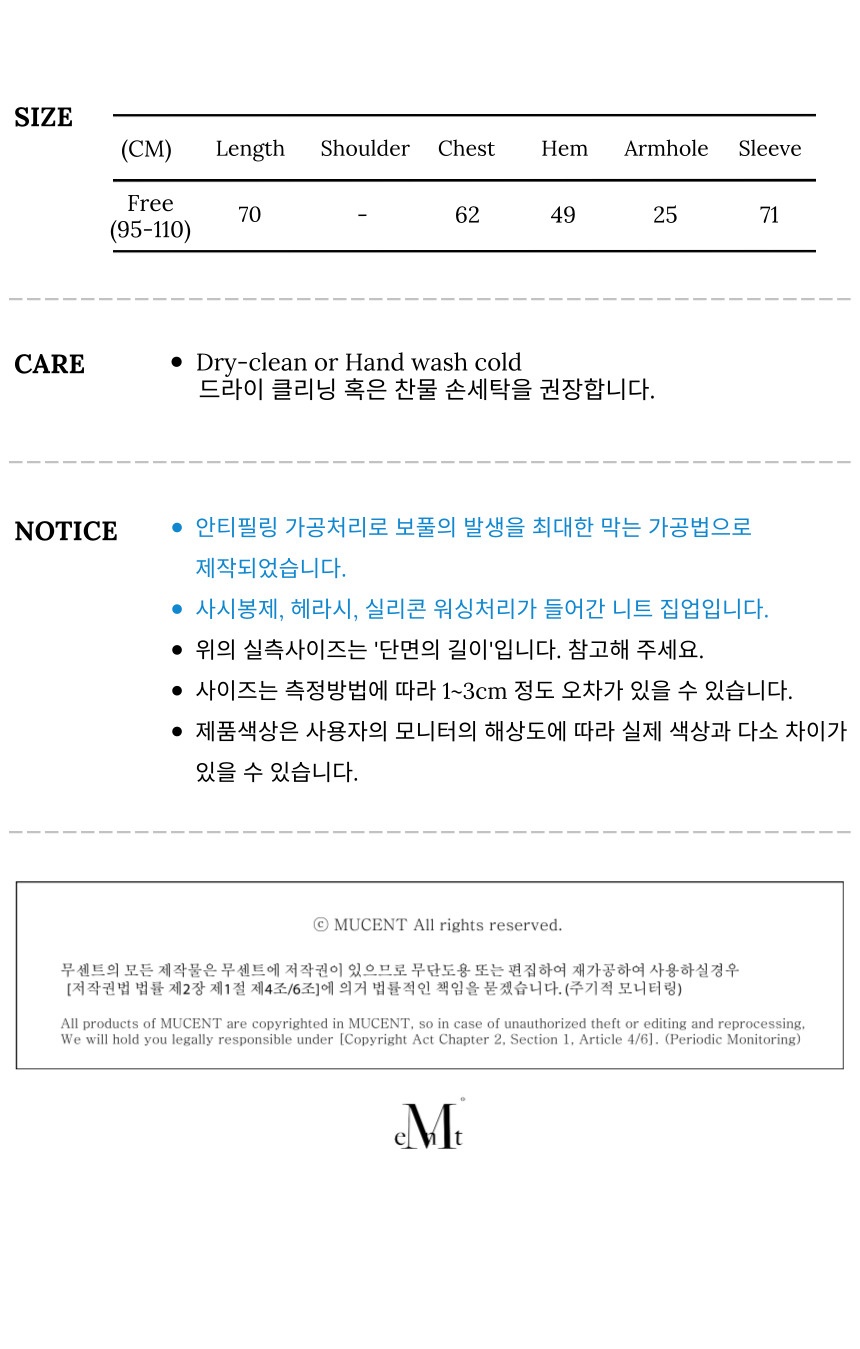┃Detail • 전면부 무센트 시그니처 로고 자수 • 소매 부분 가죽 패치 포인트 • 투웨이 지퍼로 원하는 스타일로 오픈 클로징 • 체결감 좋은 YKK 지퍼 • 카라넥으로도 연출 가능한 니트 집업 • 단독 아우터로도, 한겨울 이너로 착용 가능한 두께 • 어깨 래글런 디자인 • 루즈한 아웃핏 • UNISEX ┃Material : Polyester 100% ┃Care : Dry cleaning - 무센트는 말기의 행성인 이 지구에서 지속 가능한 옷들을 고민합니다. 우리는 신념을 소비하는 미닝아웃을 지지합니다.