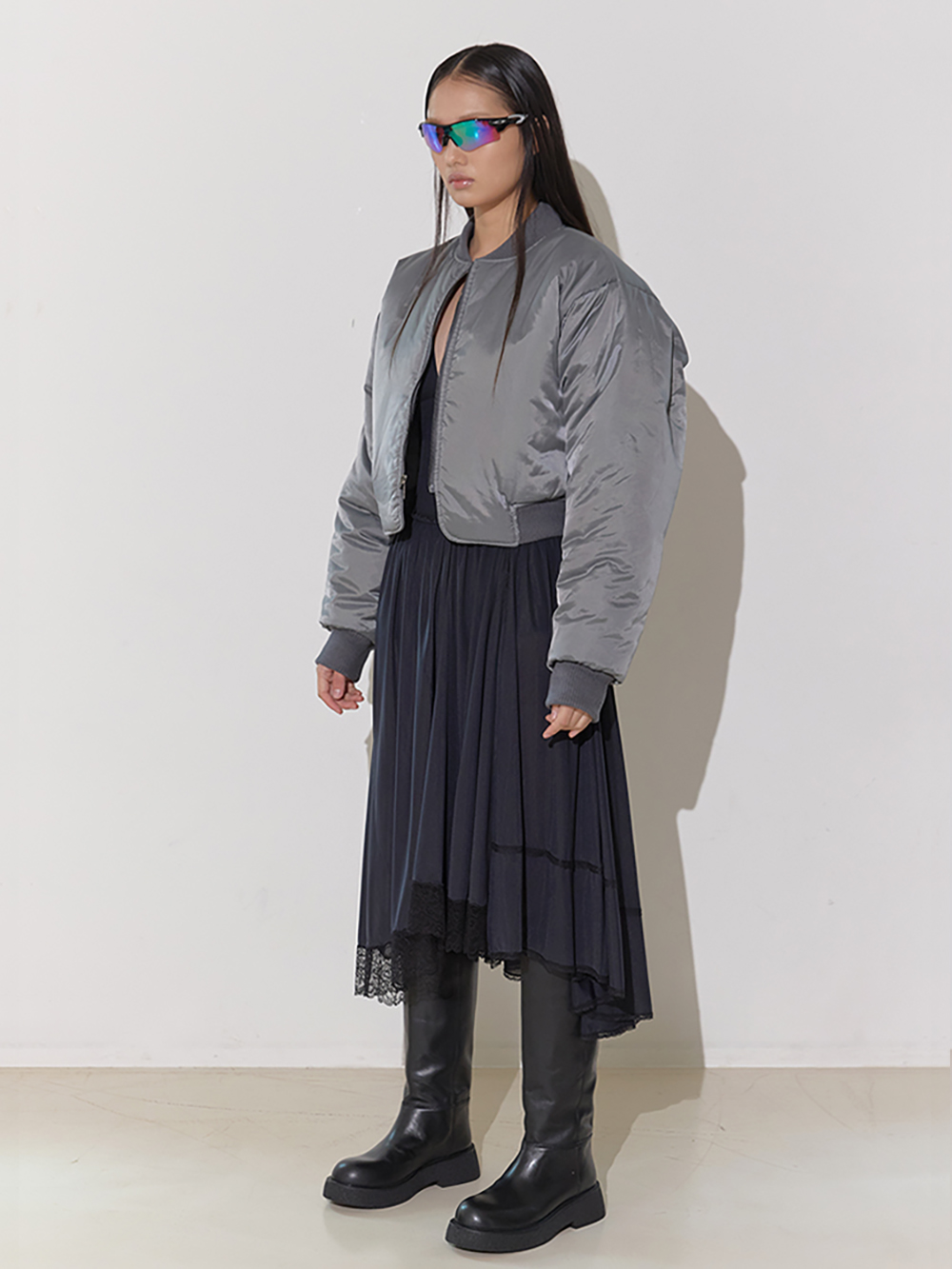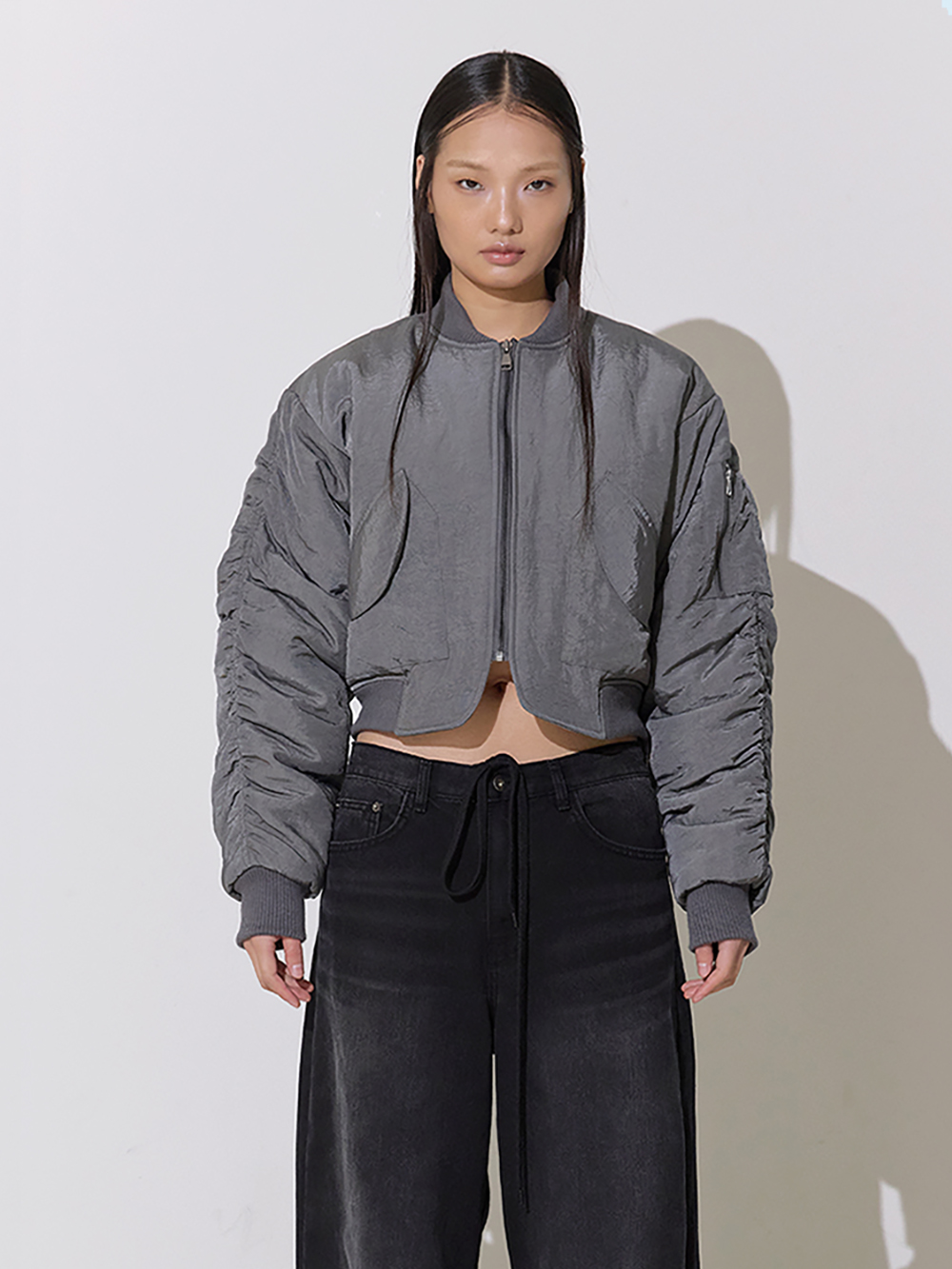 SAYSRA Shirring MA 1 Jacket Gray
