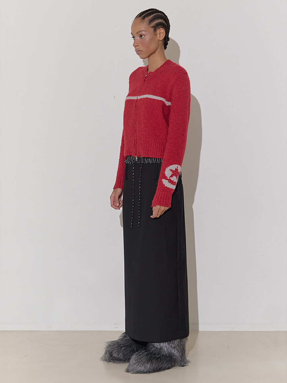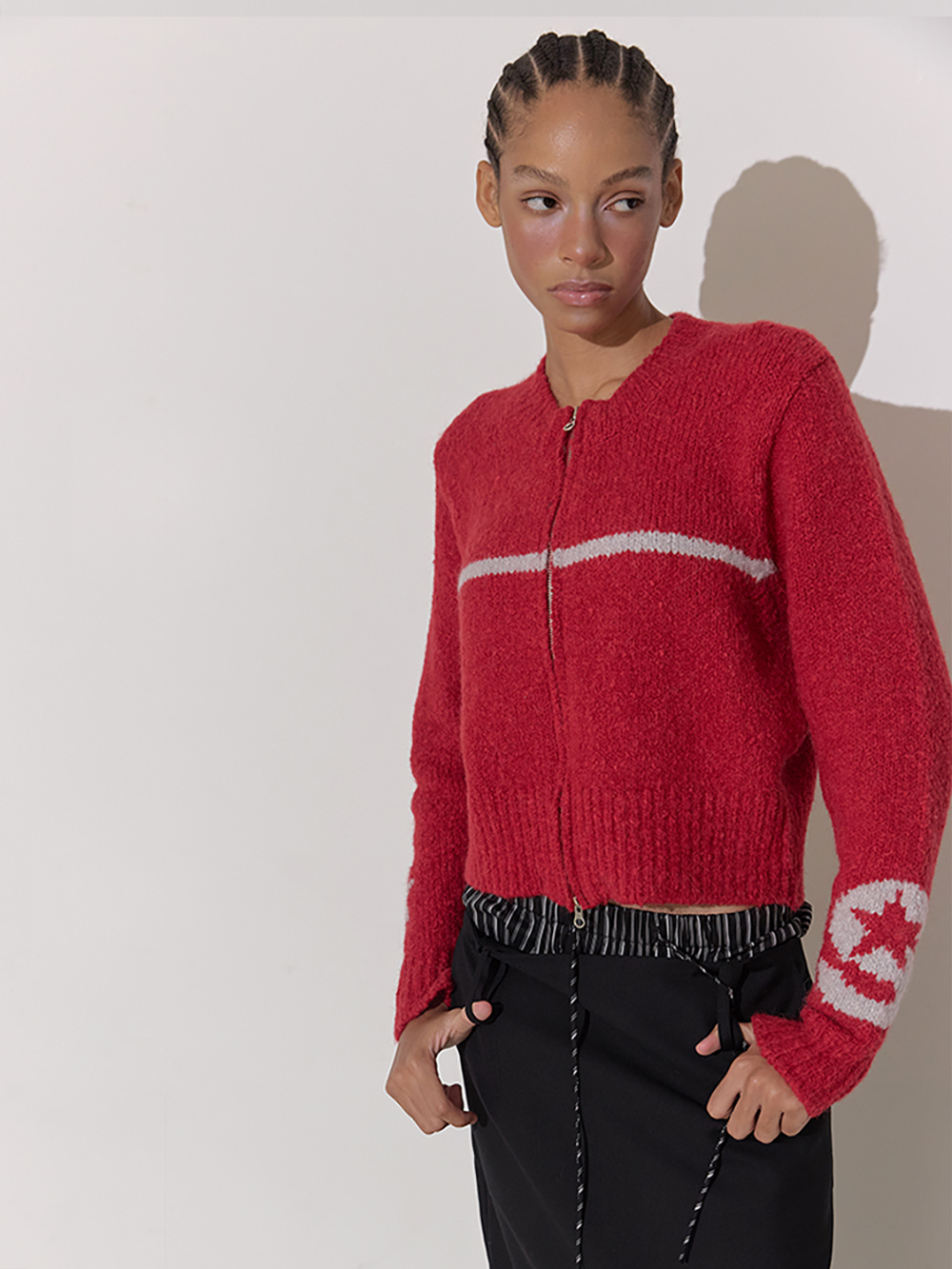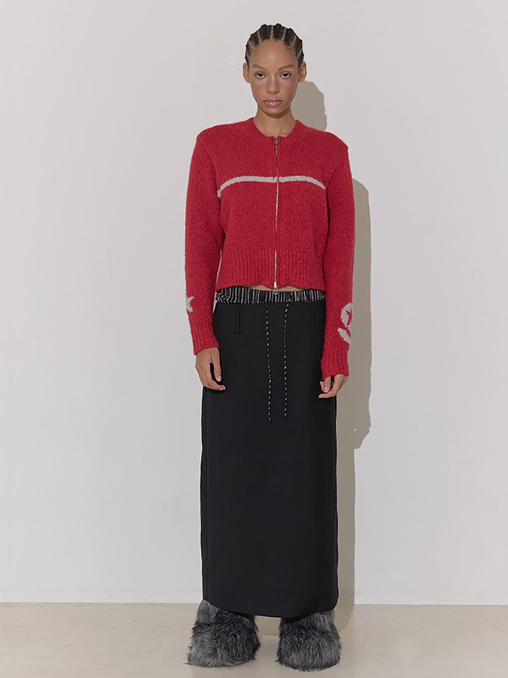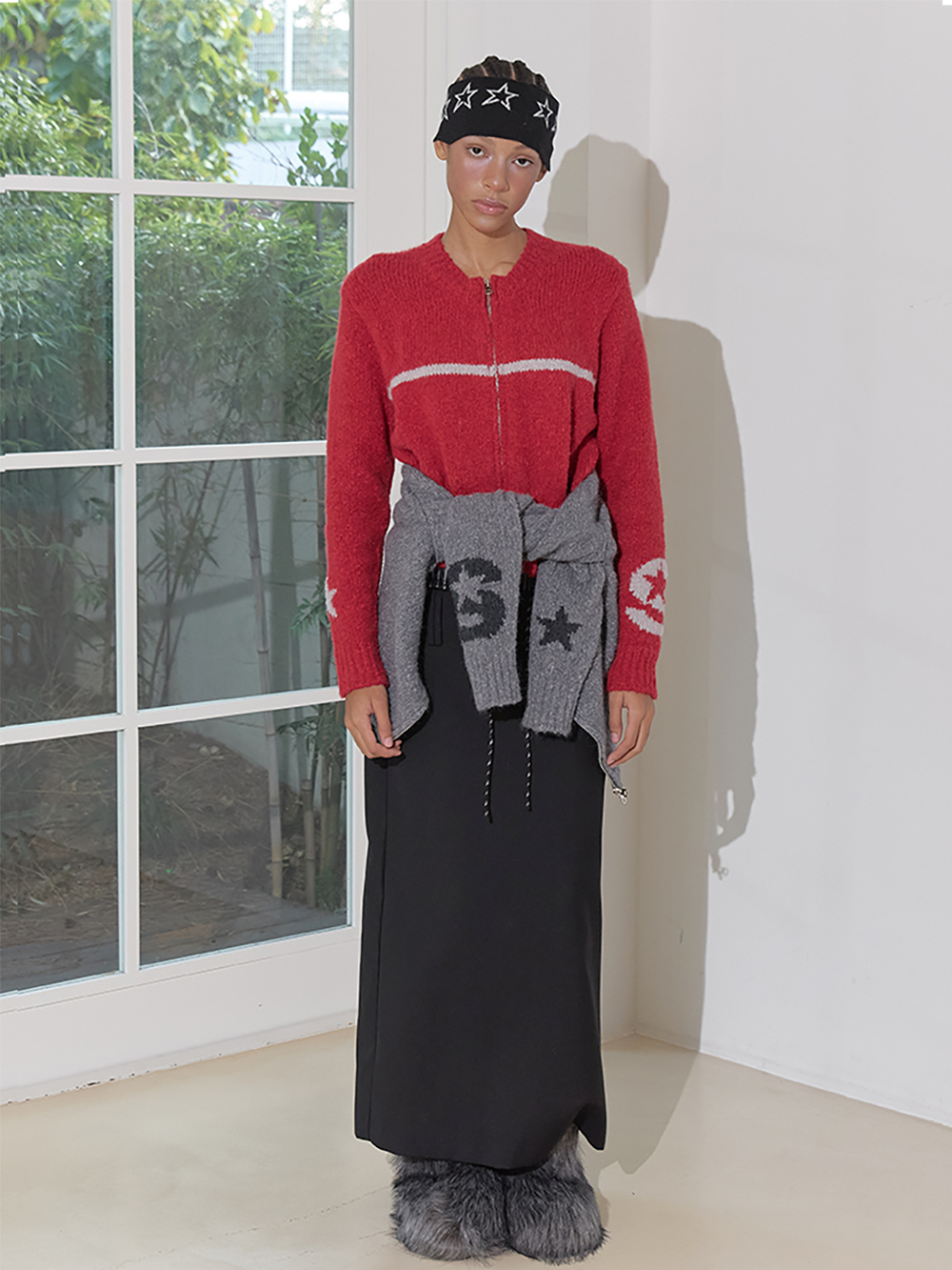 베이비 알파카와 울이 믹스된 집업 니트 가디건 소매 양쪽으로 세이스라 심볼 포인트
