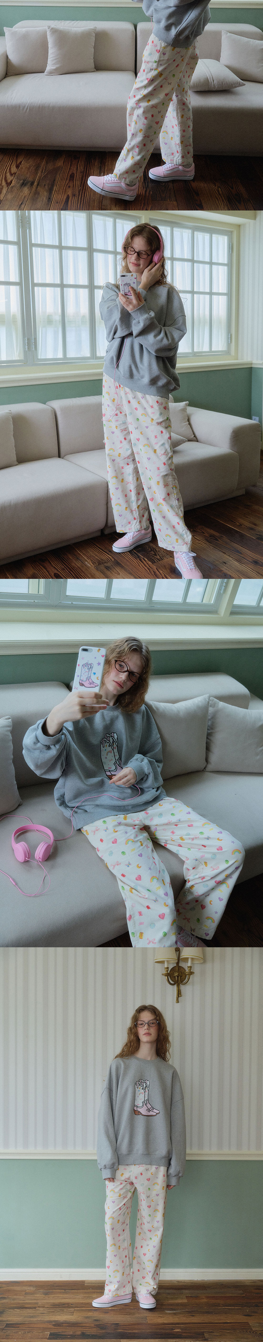 -은은한 크림컬러 베이스로 네이비가 직접 개발한 아트웍을 사용하여 패브릭 생산. -16골(얇은 골)코듀로이 패브릭을 바이오 워싱 가공 후 사용하여 FW의 따뜻함과 편안함을 텍스쳐로 표현. -밴딩 부분에서 사용한 아일렛,팁 부자재 디테일 컬러 코팅 진행.(핑크) -코듀로이 패브릭 특성상 포켓 부분 두꺼워지지 않도록 일반 코튼 패브릭과 믹스하여 사용. -와이드한 기장감이 포인트지만 밴딩 부분의 연출에 따라 기장감이 달라질 수 있음. -Neib 시그니처 로고 자수. -FREE사이즈. -디테일컷이 실제컬러와 유사합니다. Cotton 100% (Bio Washig) size (cm)FREE 허리 단면31.5-53 힙 단면54.5 허벅지단면33 앞밑위31.5 뒤밑위40.5 밑단25 총장102 MODEL SIZE Height 172cm Bust 77cm Waist 57cm Hips 89cm