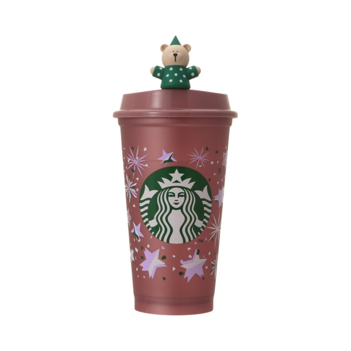 Starbucks 24 Holiday Reusable Cup Exclusive Drink Hole Cap Bearista Green 473ml