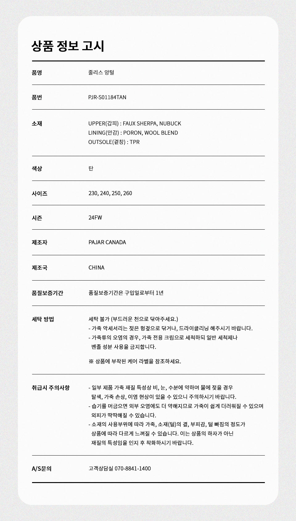 상품정보제공 고시