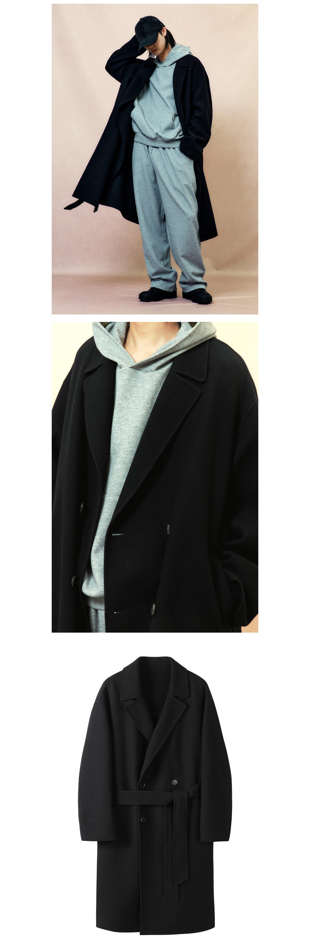 커스텀멜로우 캐시미어 블렌디드 더블 코트 블랙