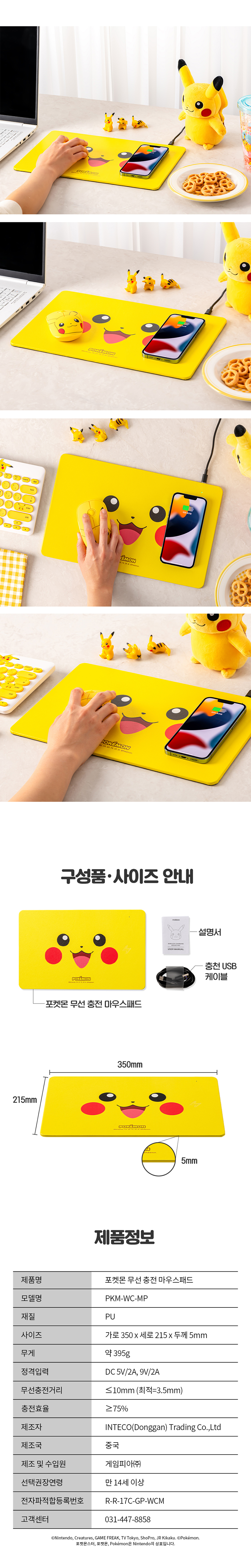 우진 스토어 포켓몬 무선 충전 마우스 패드