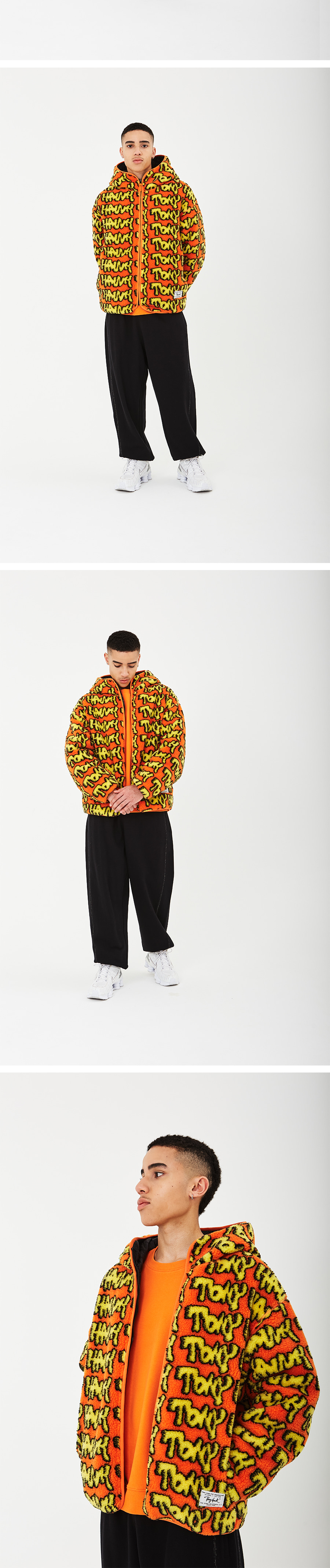 토니호크 두들 로고 쉐르파 후디 집업 자켓 오렌지