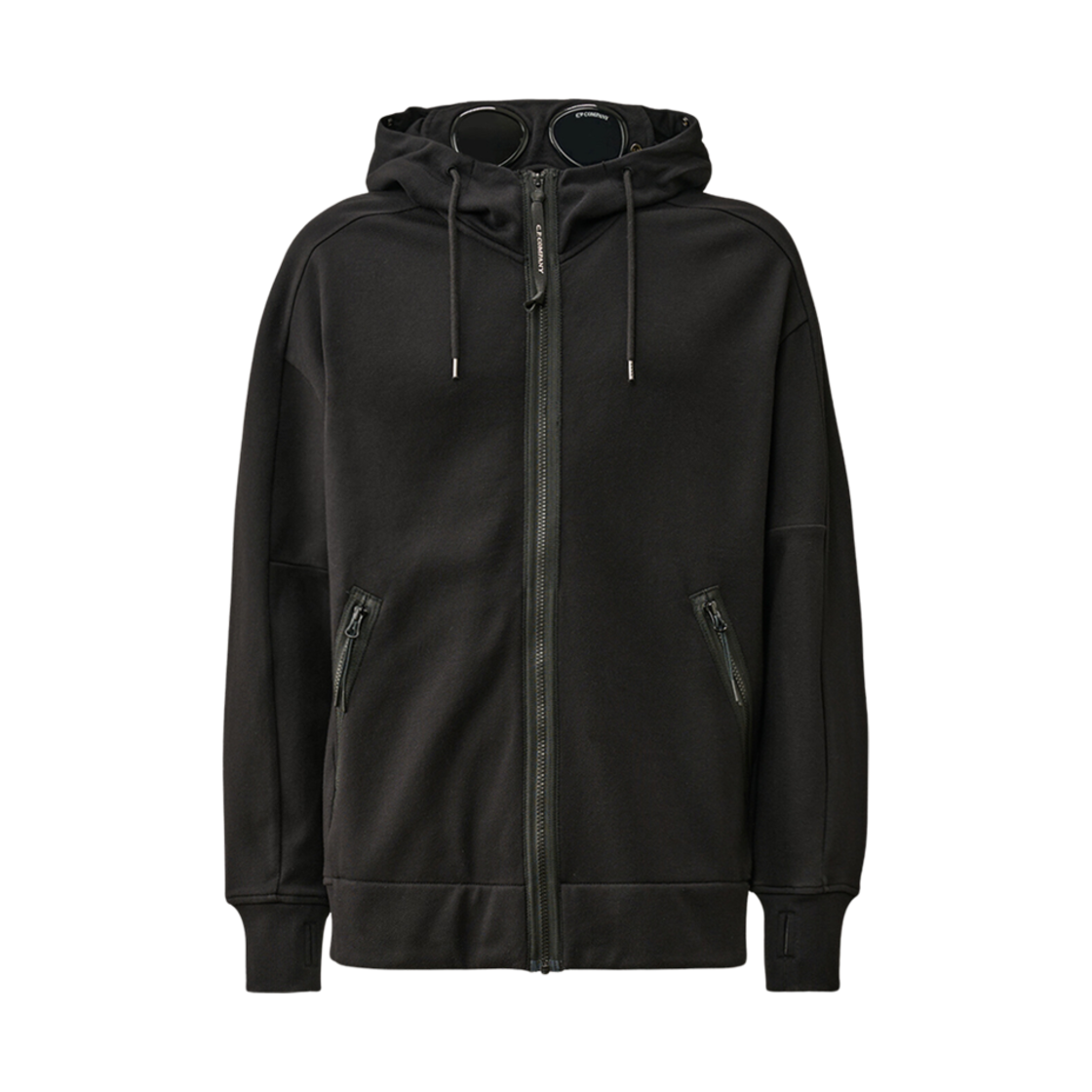 C.P. Company Diagonal Raised Fleece Goggle Zipped Hoodie Black - 24SS