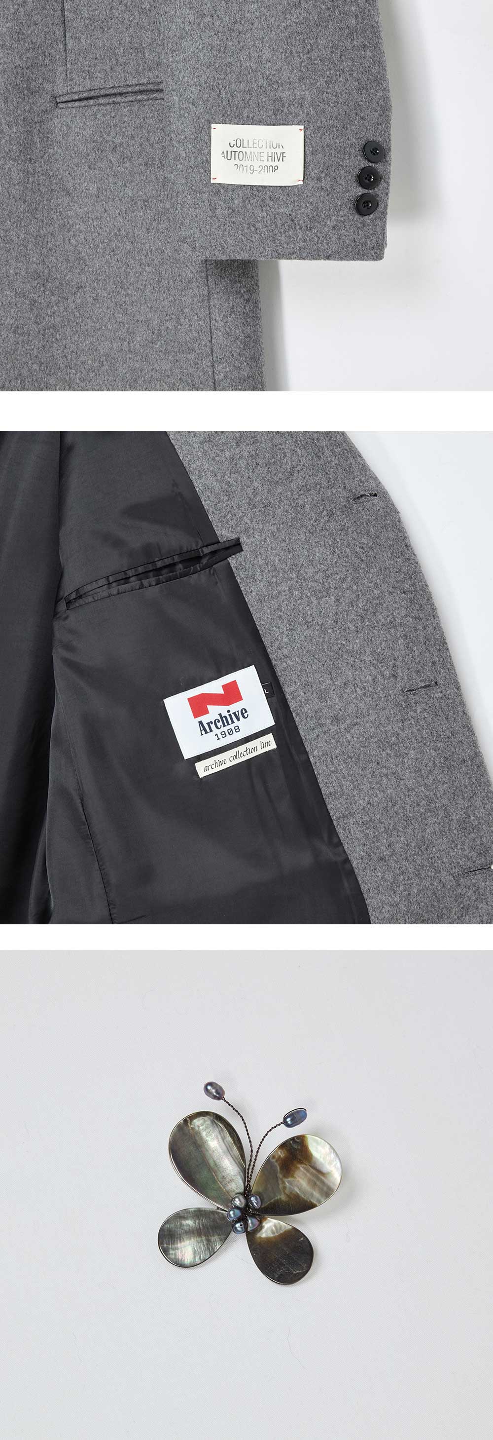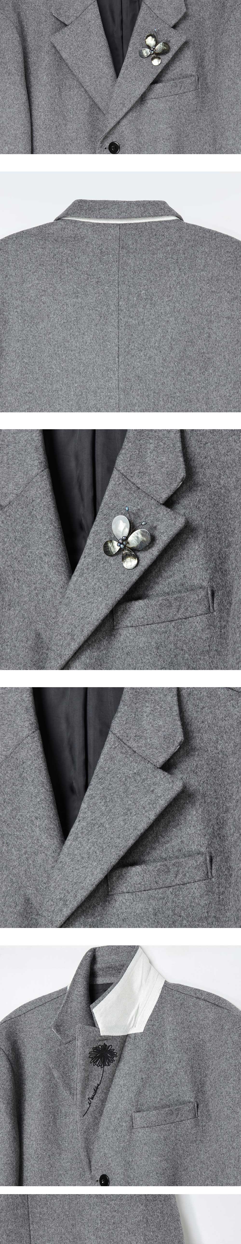 ㆍ슈퍼 파인 울 혼방 원단으로 제작 ㆍ세미 오버핏으로 여유로운 실루엣 연출 ㆍ맥시한 기장감으로 드라마틱한 핏 연출 ㆍ오리지널 테일러링으로 뛰어난 퀄리티와 내구성 ㆍ라펠 안쪽 플라워 홀 자수 디테일 ㆍ천연 흑자개로 제작된 버터플라이 브로치 옵션 ㆍ핸드메이드 메인 라벨 ㆍ남녀공용 착용 ㆍ여성분들은 M사이즈 착용 권장 ㆍ상품 및 모델착용 이미지 내 나비 브로치는 별도 구매가 필요한 상품입니다. -> [COLLECTION LINE] 블랙 셸 버터플라이 브로치