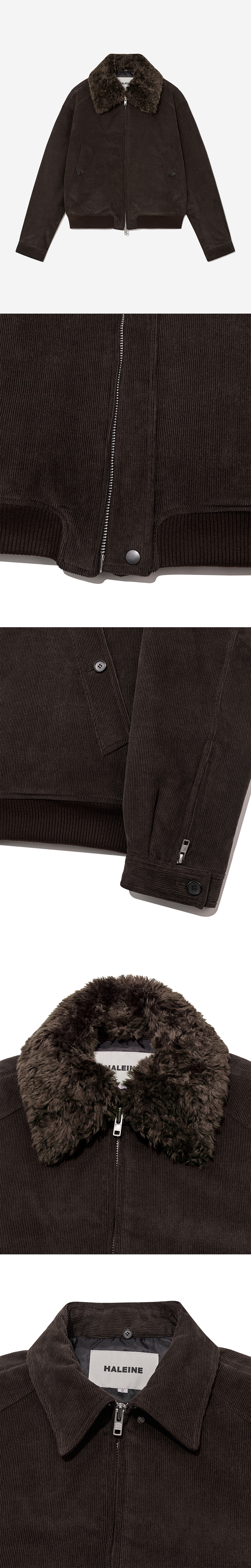 Haleine Detachable Collar Corduroy Padding Blouson Brown (VJ428)