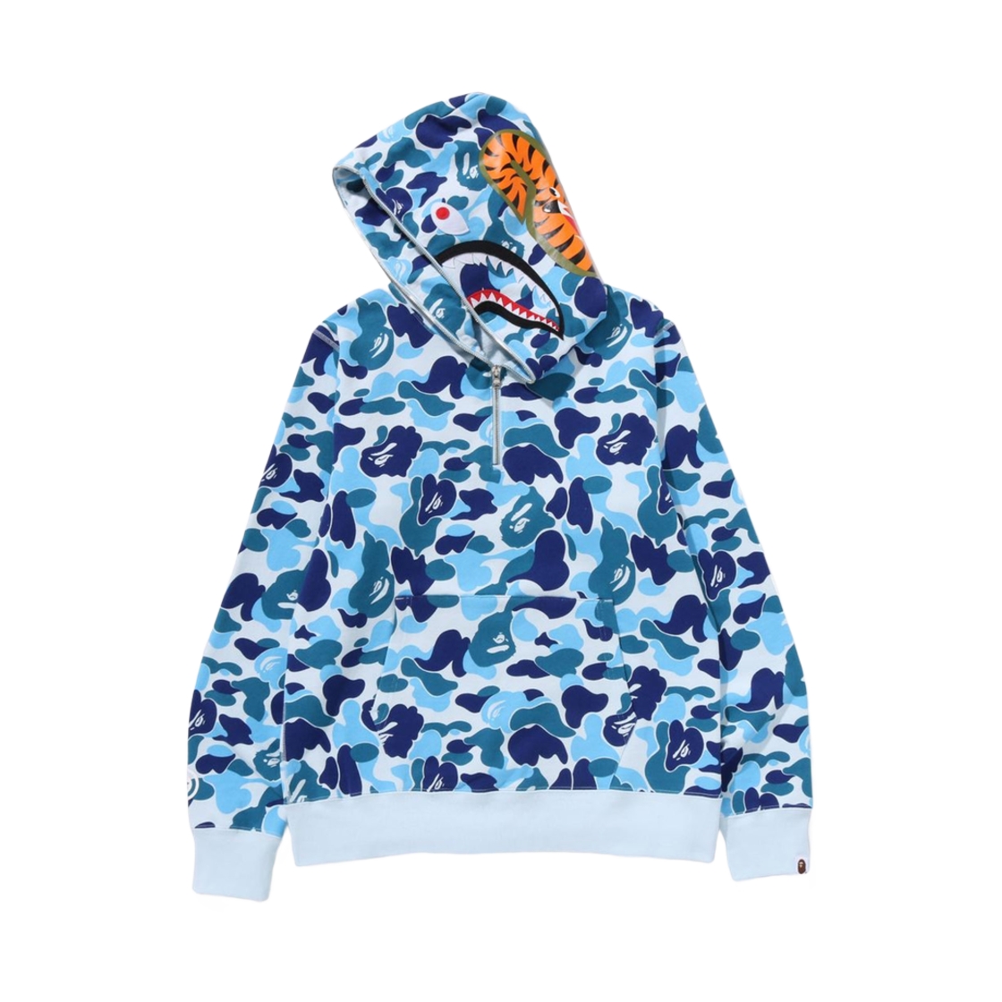 베이프 ABC 카모 샤크 하프 집 풀오버 후드 블루