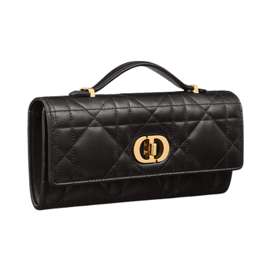Dior Miss Caro Top Handle Pouch Macrocannage Lambskin Black