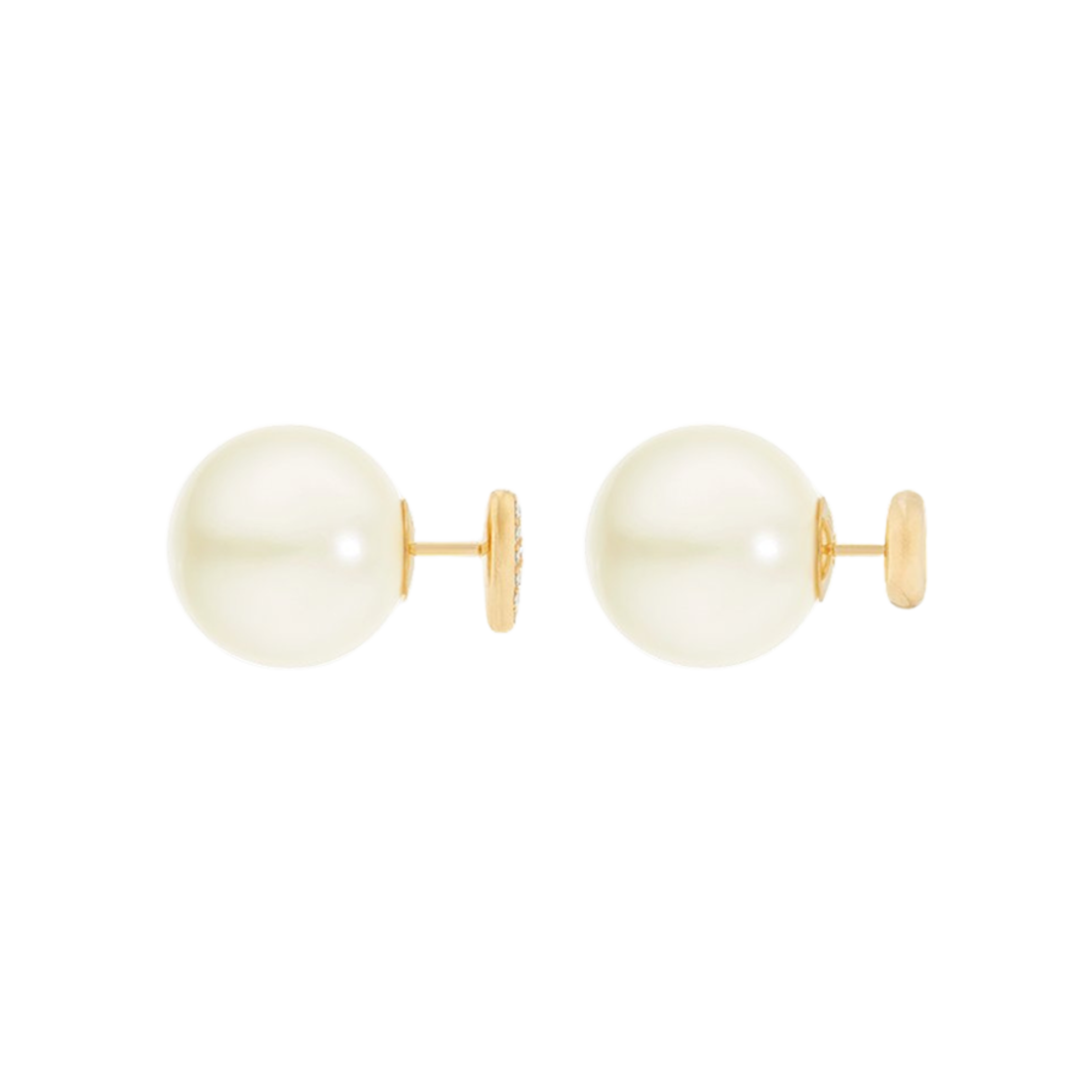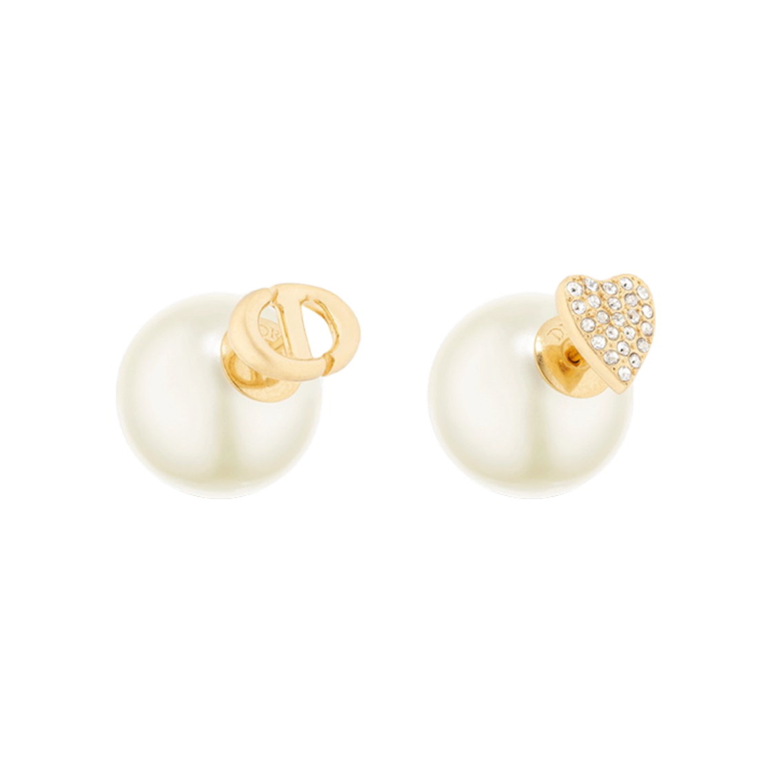 (W) Dior Tribales Earrings Gold Finish Metal White Resin Pearls Silver Tone Crystals