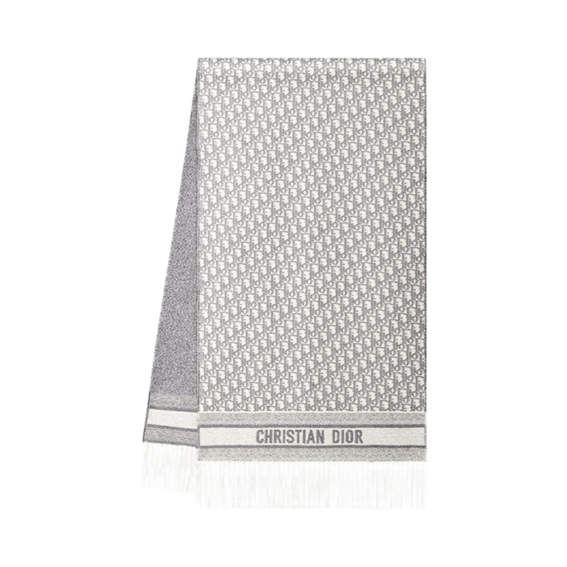 Dior Oblique Muffler Cashmere Blend and Metallic Thread White Silver