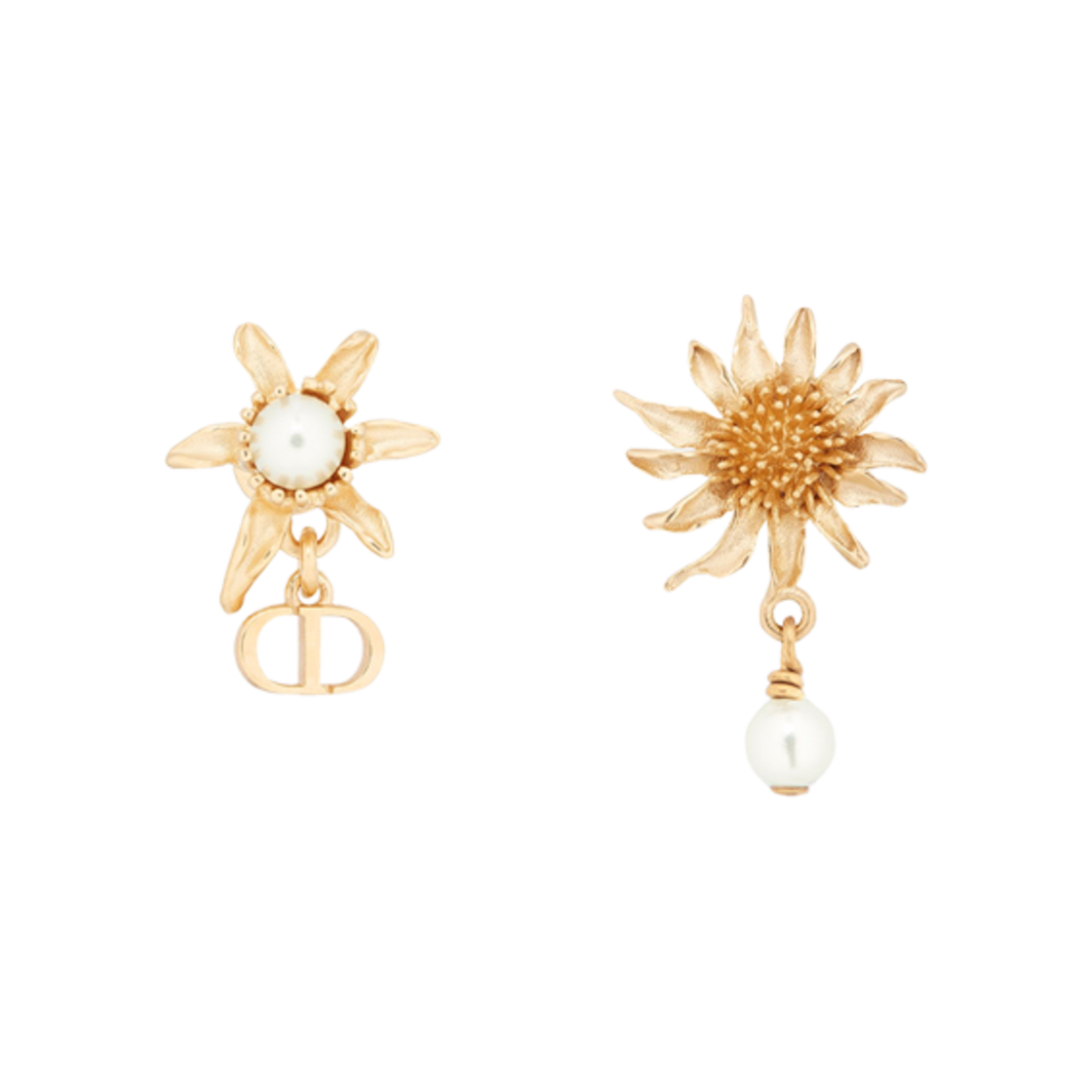 (W) Dior Chardons Earrings Gold Finish Metal White Resin Pearls