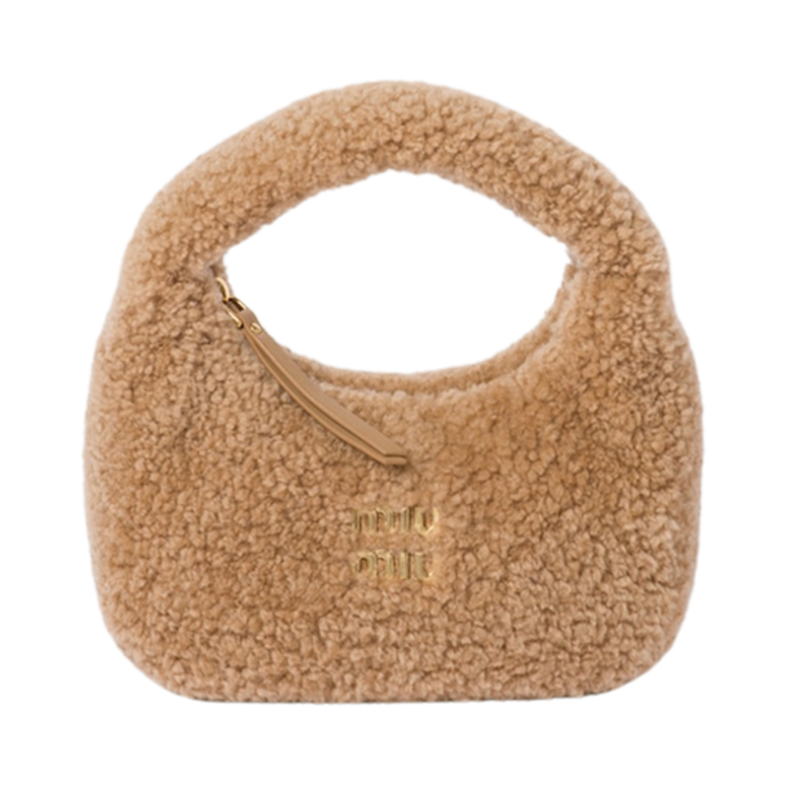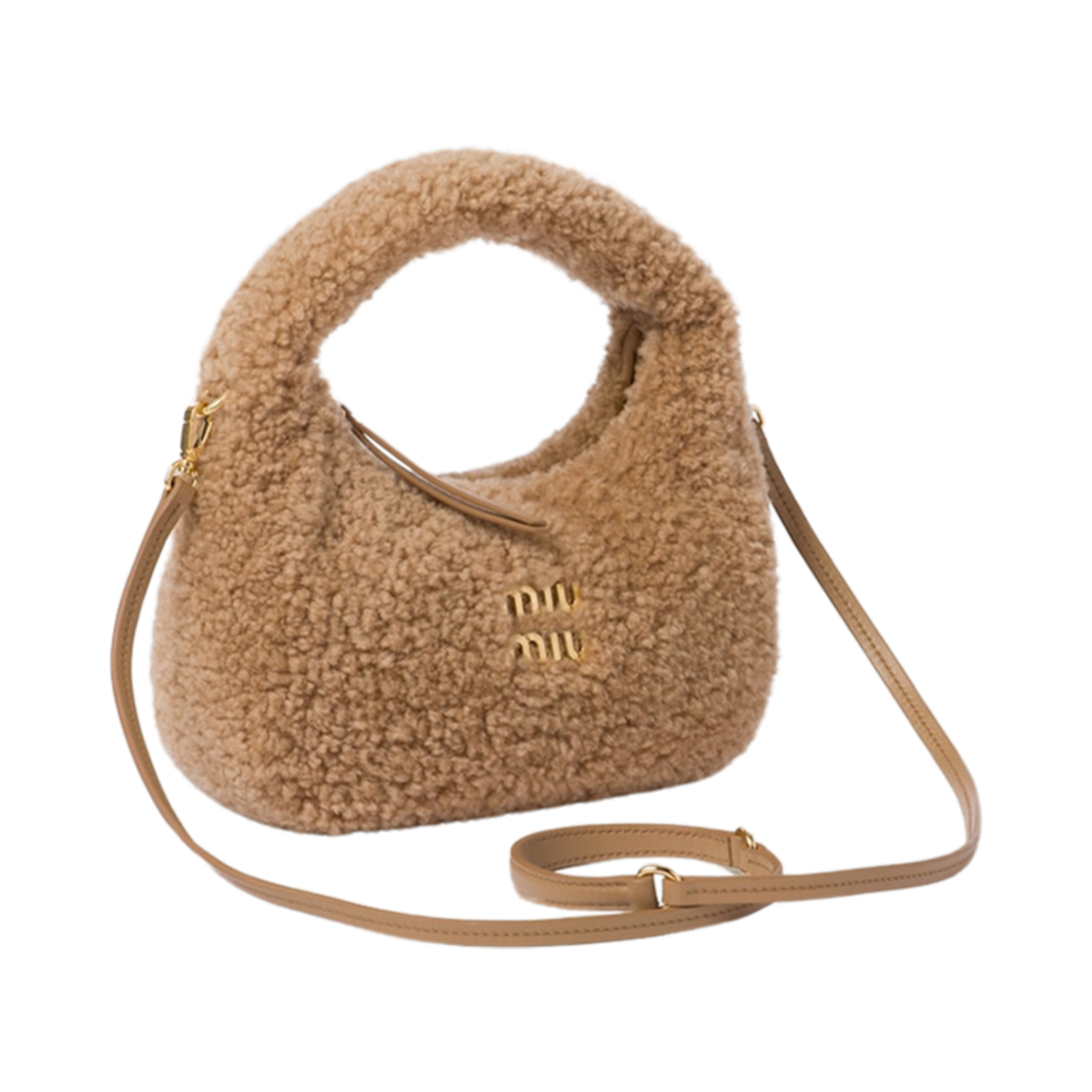 Miu Miu Wander Shearling Hobo Bag Caramel