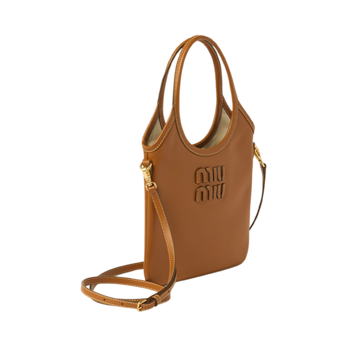 미우 미우 아이비 레더 미니 핸드백 꼬냑
