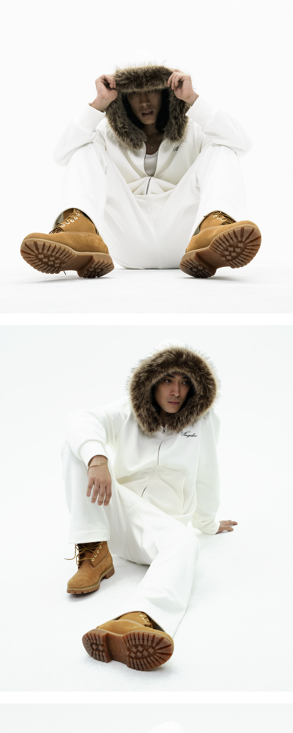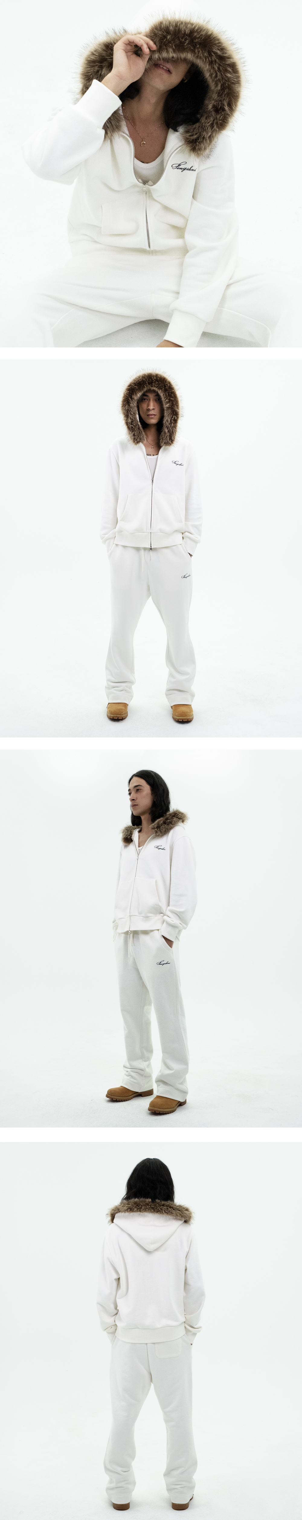 [KREAM 단독 / 프리오더] FENGSHUI Small Logo Fur Hood Zip-Up Jacket White Cream