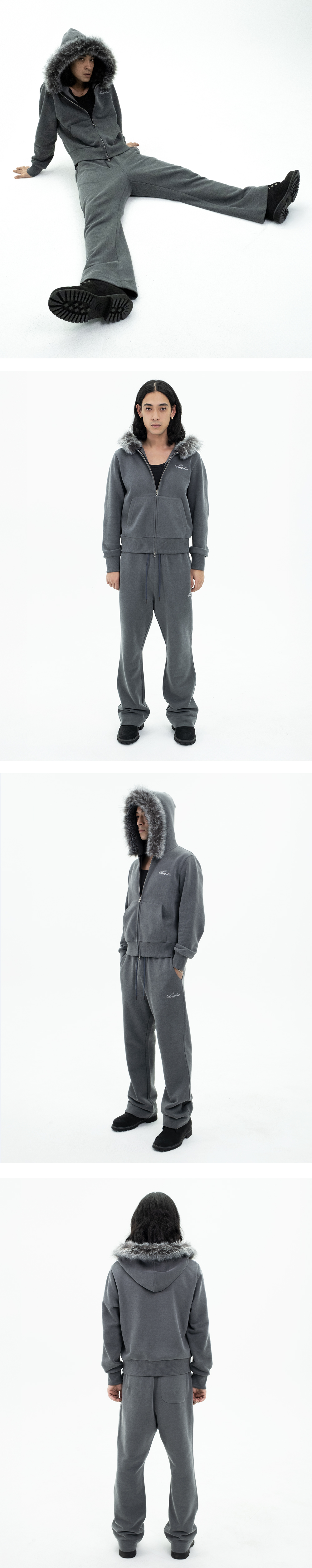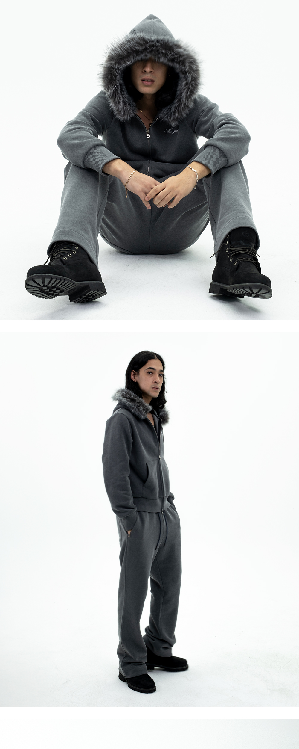 [KREAM 단독 / 프리오더] FENGSHUI Small Logo Fur Hood Zip-Up Jacket Charcoal
