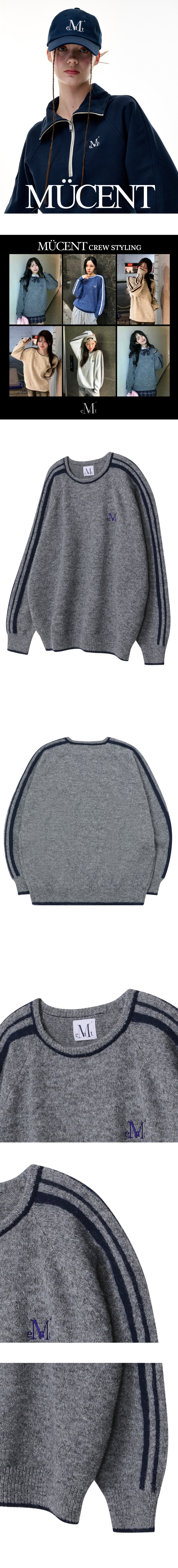 무센트 헤르네 트랙 라인 레글런 루즈핏 니트 차콜