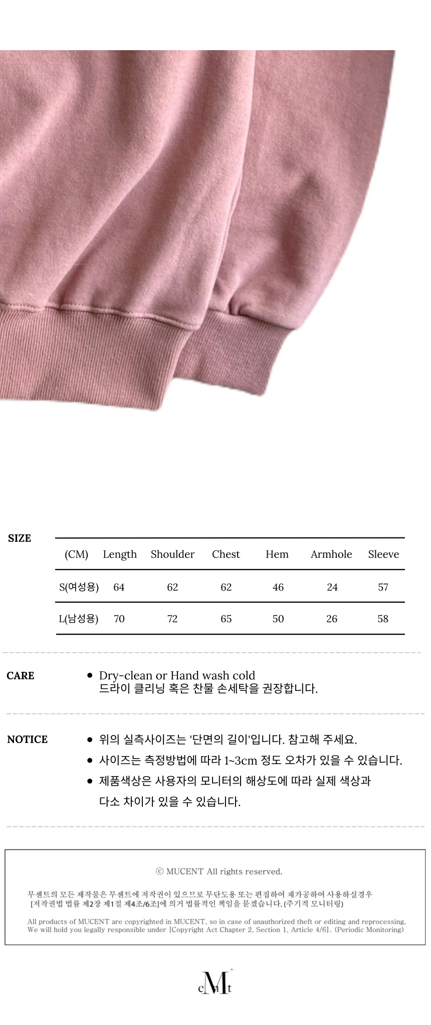 측정 방법에 따라 사이즈에 일부 오차가 있을 수 있습니다.