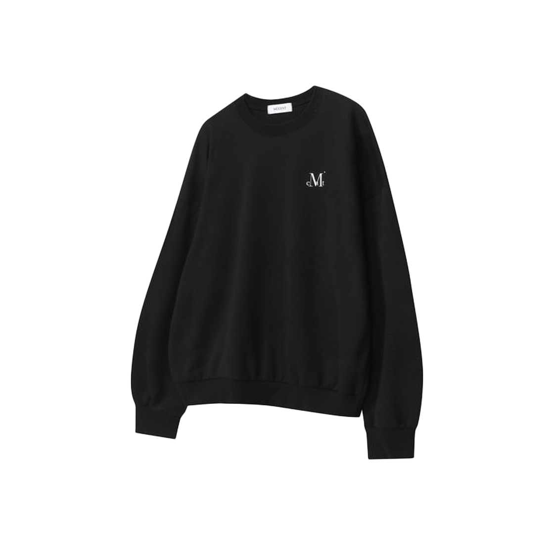 무센트 시그니처 백 로고 루즈핏 맨투맨 블랙