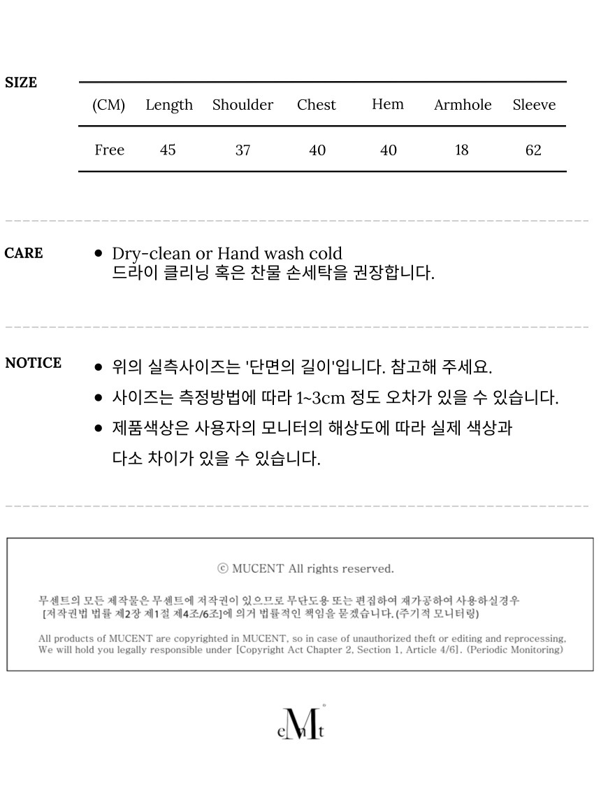 측정 방법에 따라 사이즈에 일부 오차가 있을 수 있습니다.
