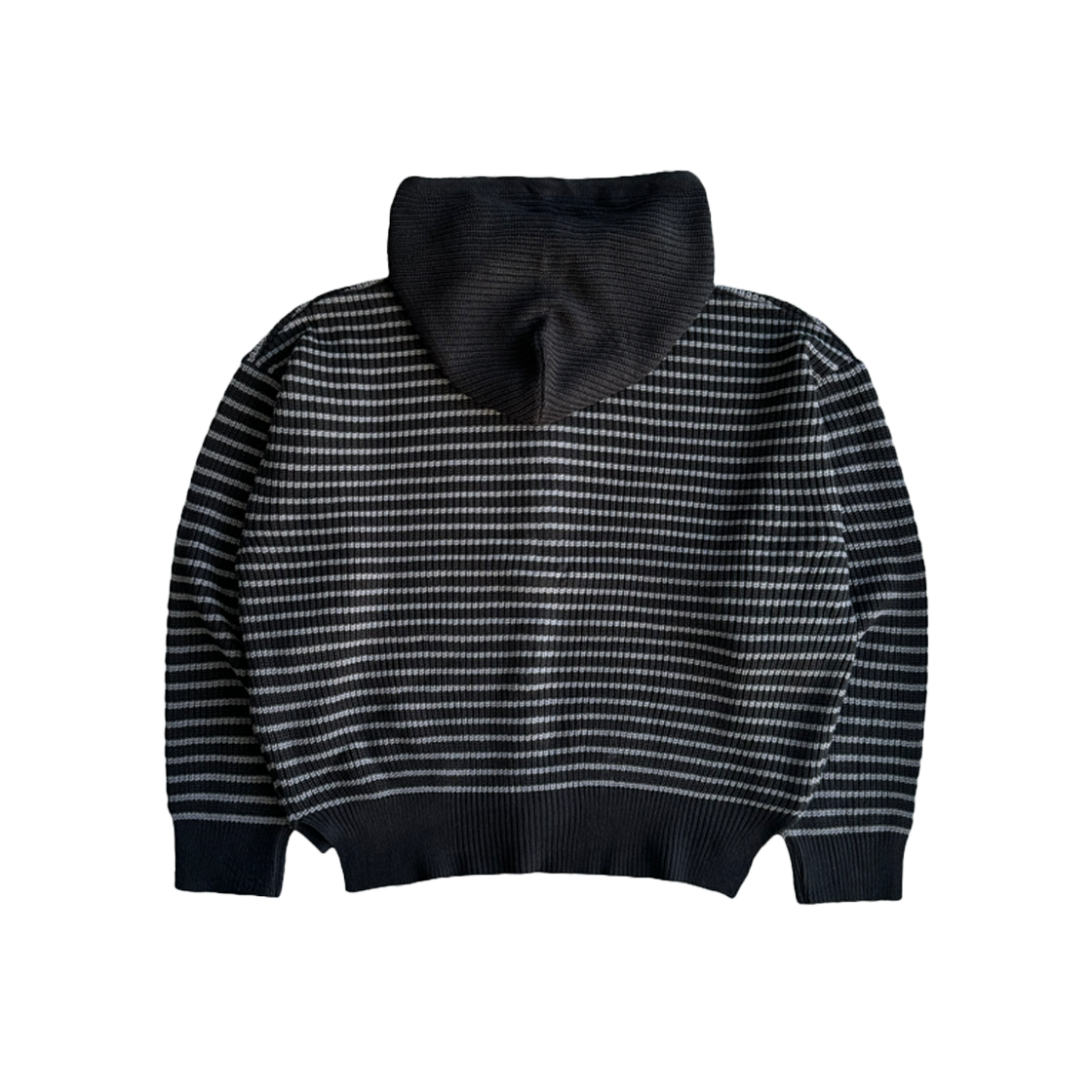 무센트 메이 오버핏 스트라이프 핸드워머 니트 후드 집업 블랙