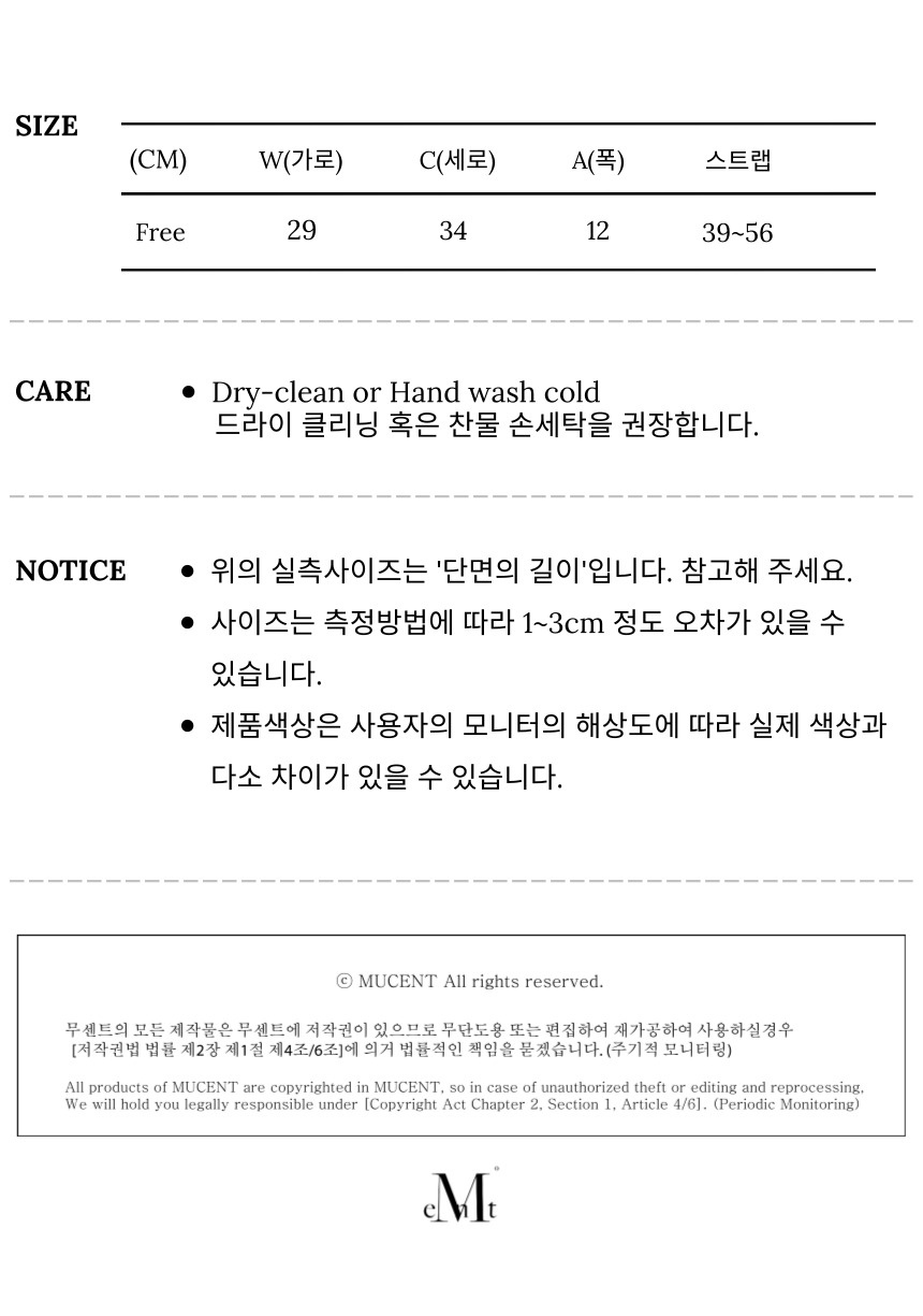 측정 방법에 따라 사이즈에 일부 오차가 있을 수 있습니다.