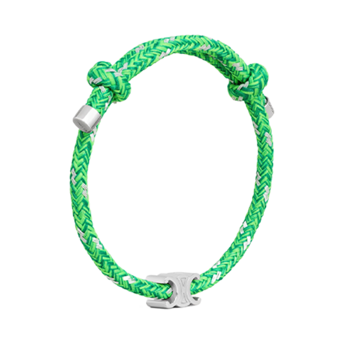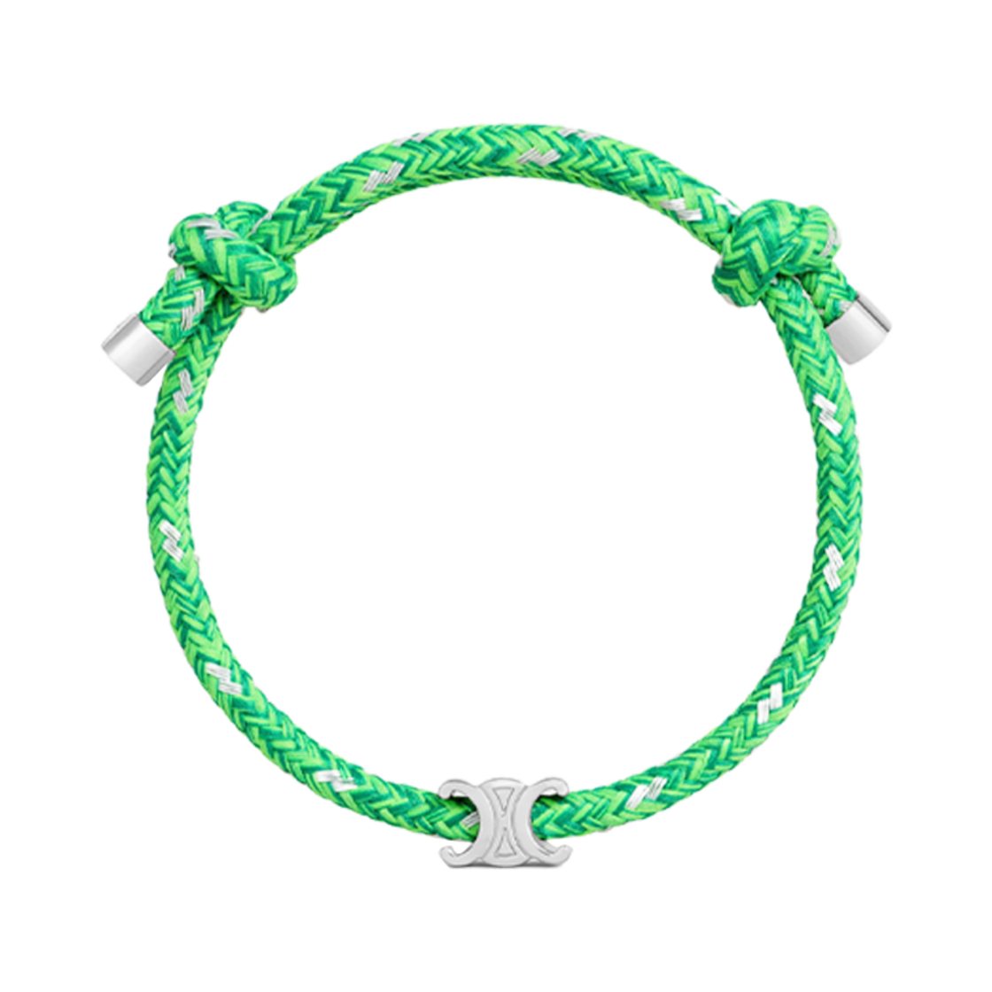 Celine Triomphe Beach Bracelet in Polyester and Brass with Rhodium Finish Neon Green Silver