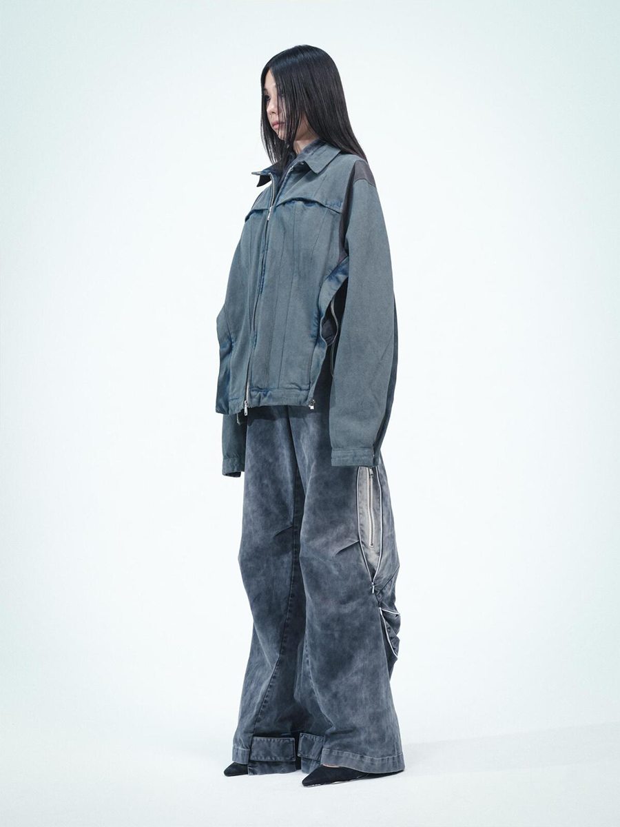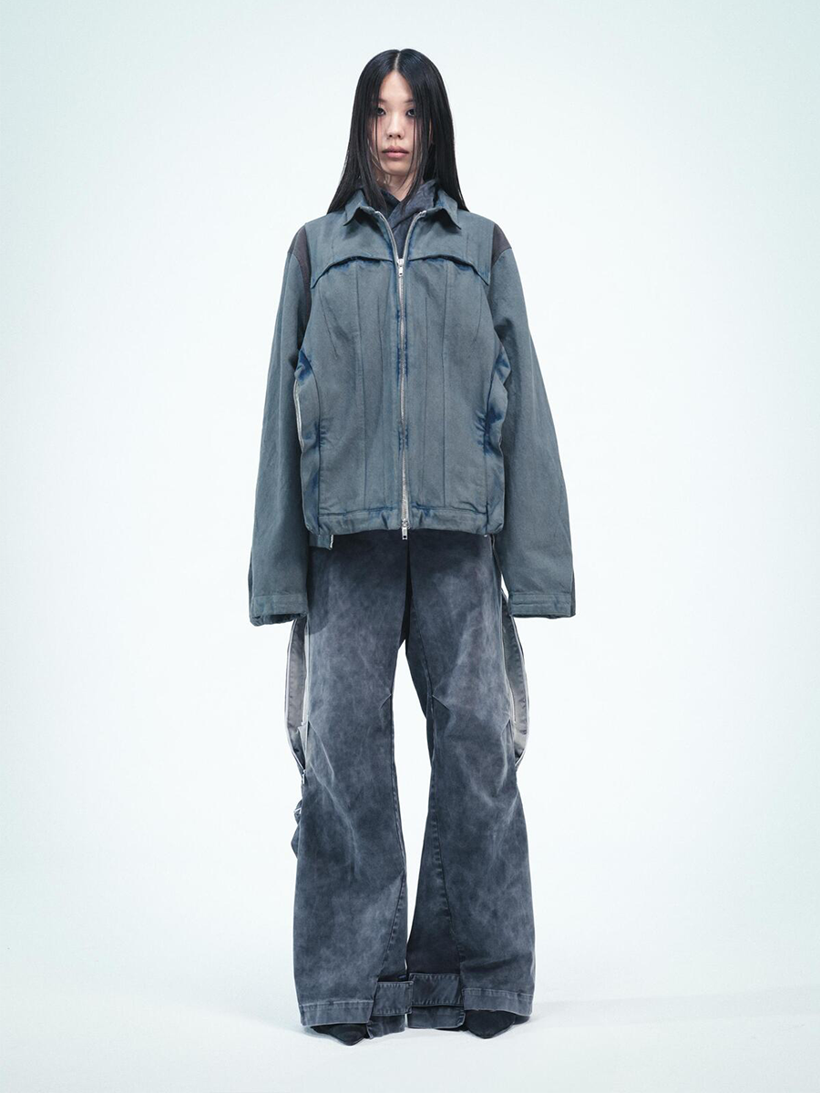 옷 전체에 러버 소재의 왁스 가공으로 독특한 터치 전면, 사이드의 지퍼여밈으로 다양한 형태의 스타일링 가능 뒷면 밑단에 조절 가능한 버튼 탭 소매를 따라 내려오는 플랩과 버튼탭 사이드에 지퍼 안쪽으로 숨어있는 히든 포켓 어께부분 스트레치 원단 배색으로 활동성 강조 The entire jacket has a unique texture created by a rubber wax coating. Zipper fastening on the front and sides allows for various styles of styling. Adjustable button tab at back hem Flaps and button tabs running down the sleeves Hidden pocket hidden inside the zipper on the side Stretch fabric color scheme on the shoulder area emphasizes activity.