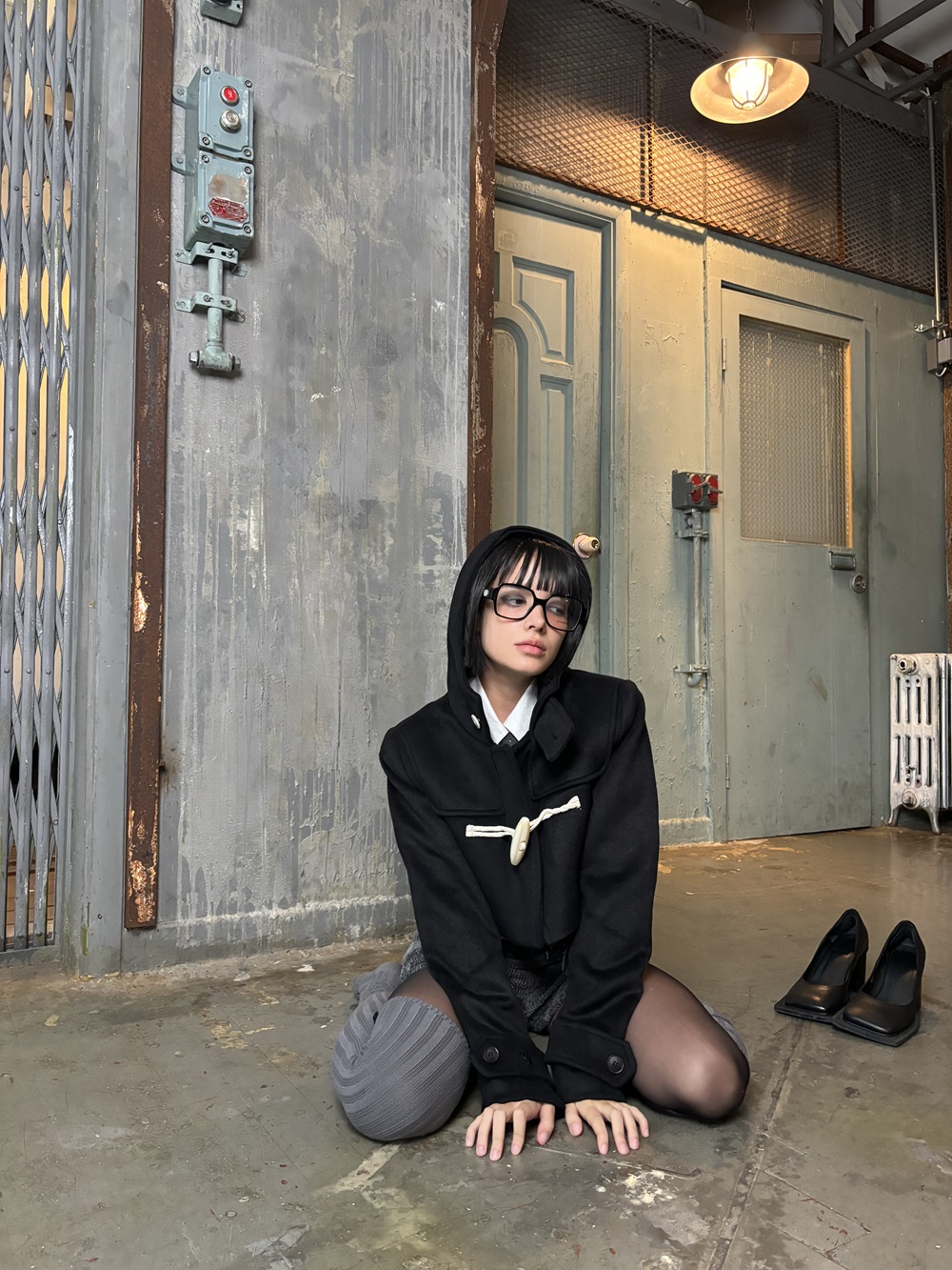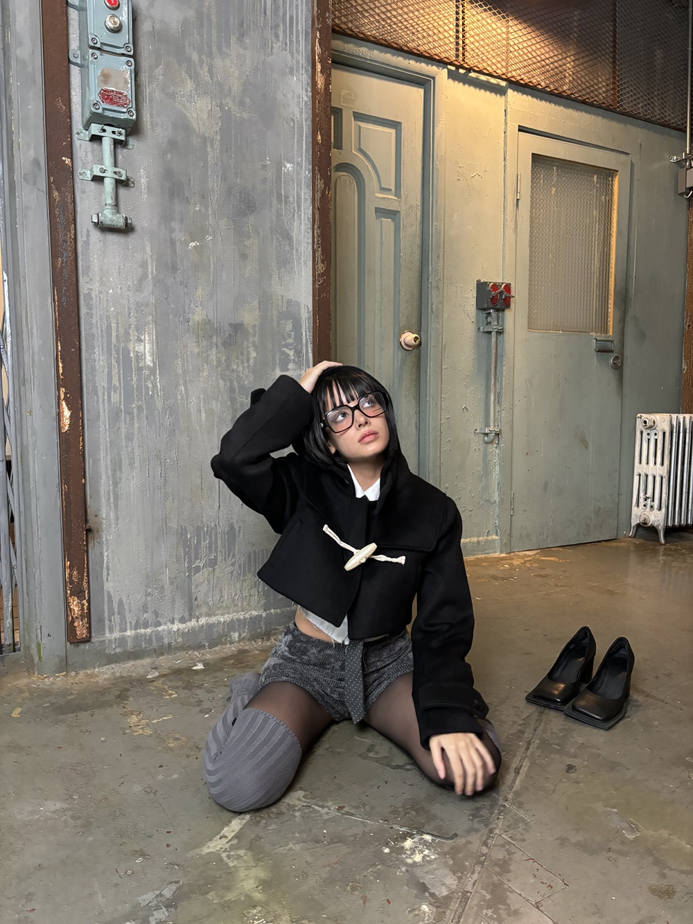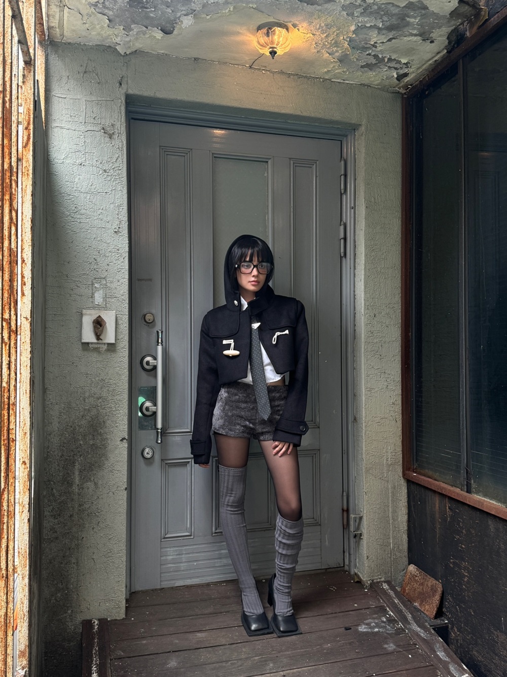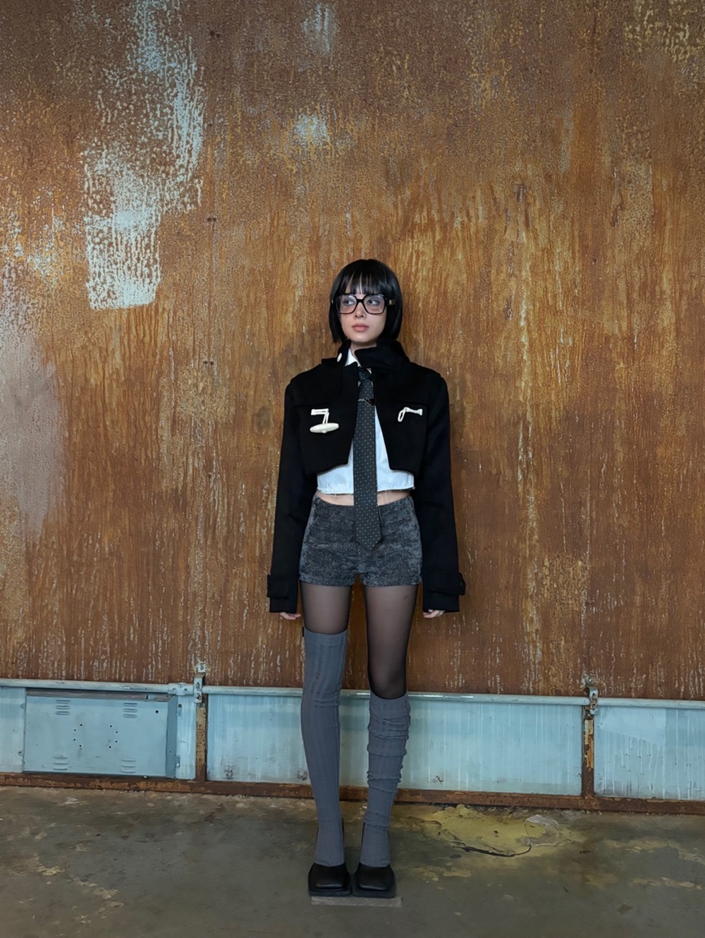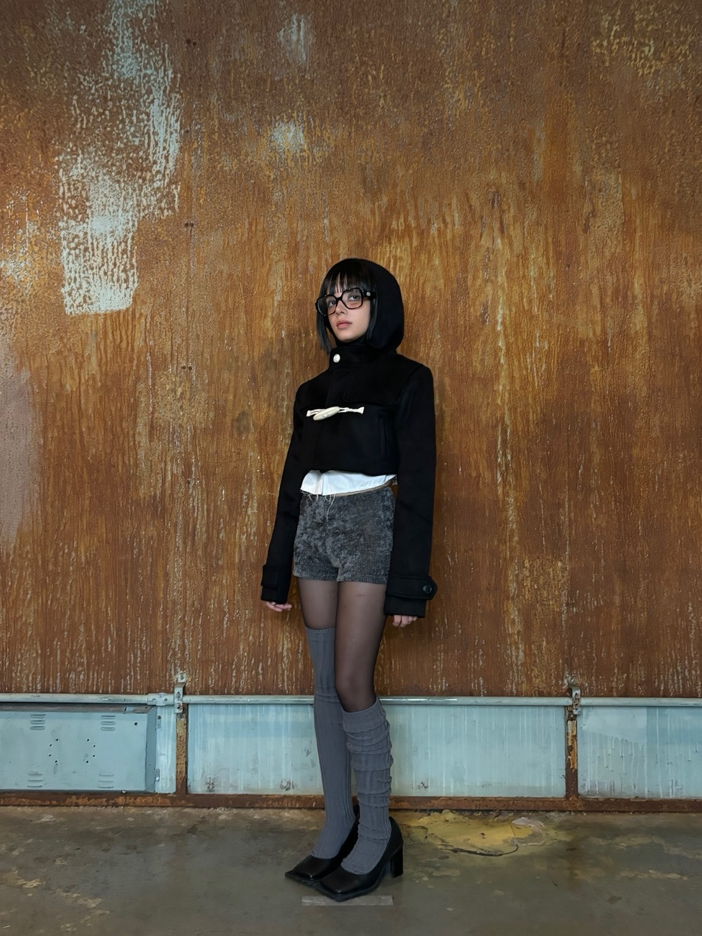 빅 떡볶이 단추가 포인트 인 숏 하이틴 무드 코트 입니다. 부드러운 질감과 하이넥 후드가 달려 폭닥함을 줍니다.