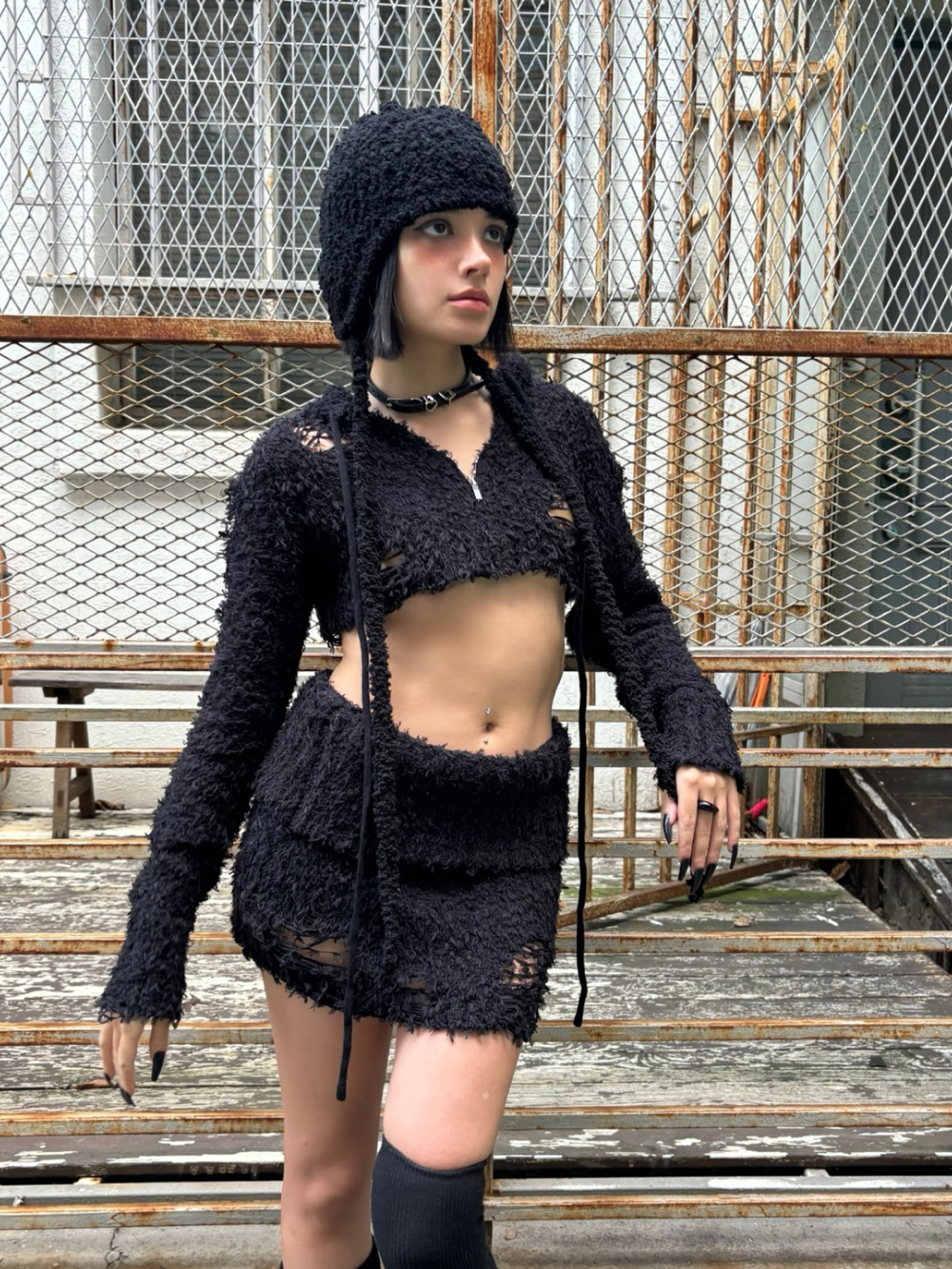 BNFROM From Knit Hood Zipup Black