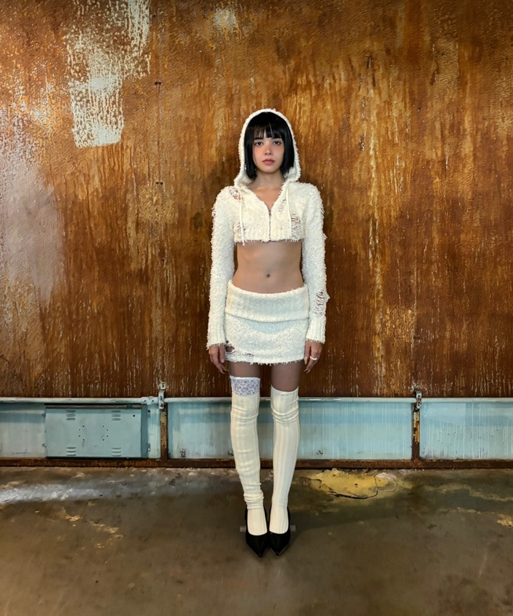 골지 니트 소재로 기장이 길어 허벅지 중간 까지 오는 하이틴 무드의 롱 니삭스 입니다. 골지 라인으로 인하여 슬림해보이는 다리 라인과 길어보이는 효과를 더해 슬림한 실루엣을 완성시켰습니다 두깨감이 있는 니트 소재로 따듯한 보온성을 높였습니다. 사이드 로고 라벨 디테일이 있습니다.