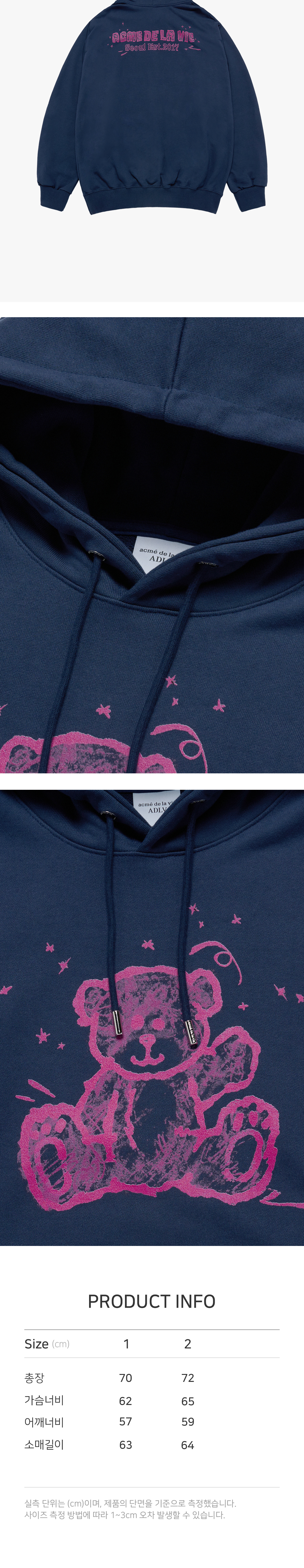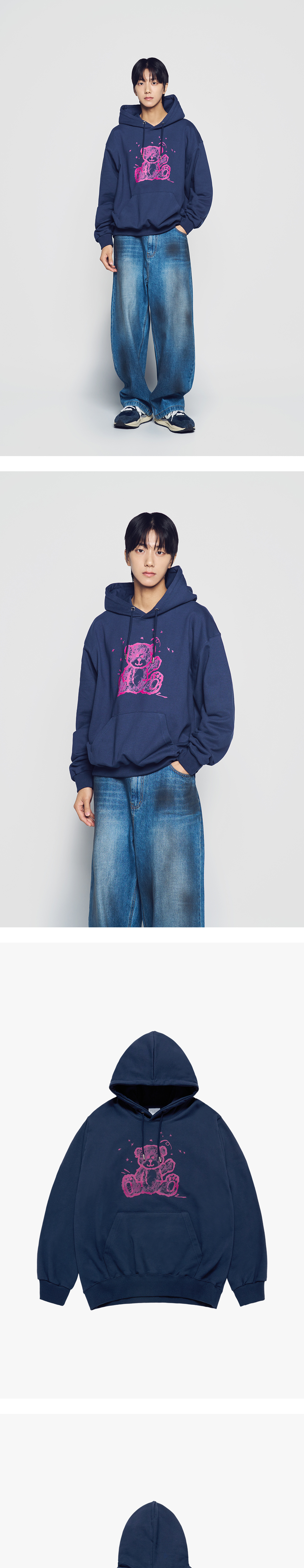 아크메드라비 핸드 스케치 베어 후드 네이비