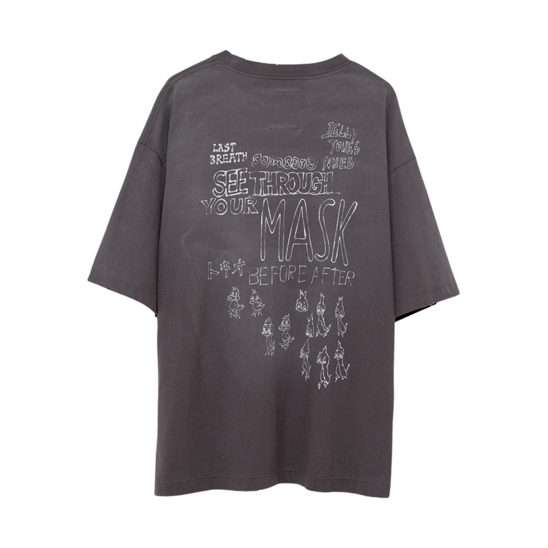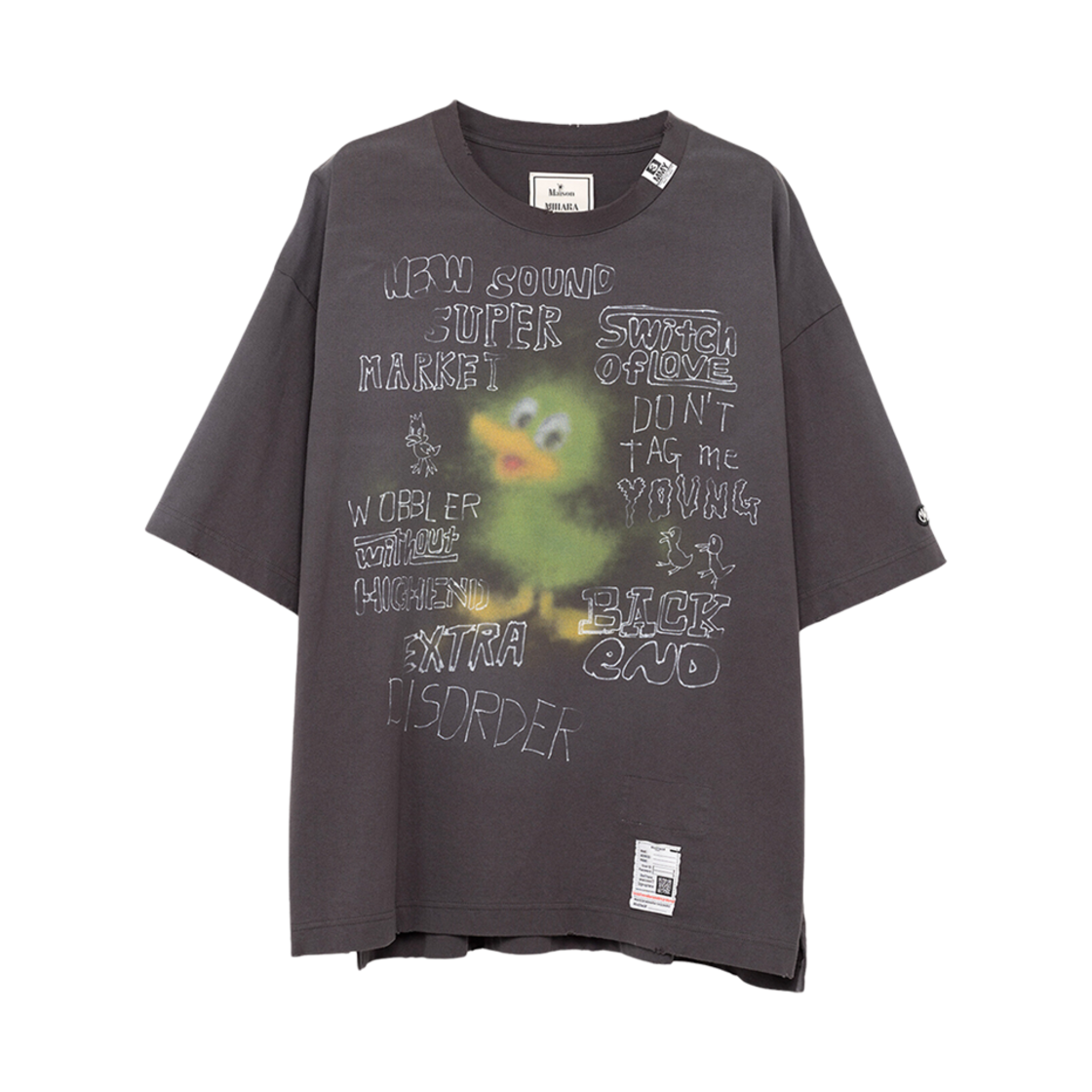 메종 미하라 야스히로 덕 프린티드 디스트레스 티셔츠 블랙
